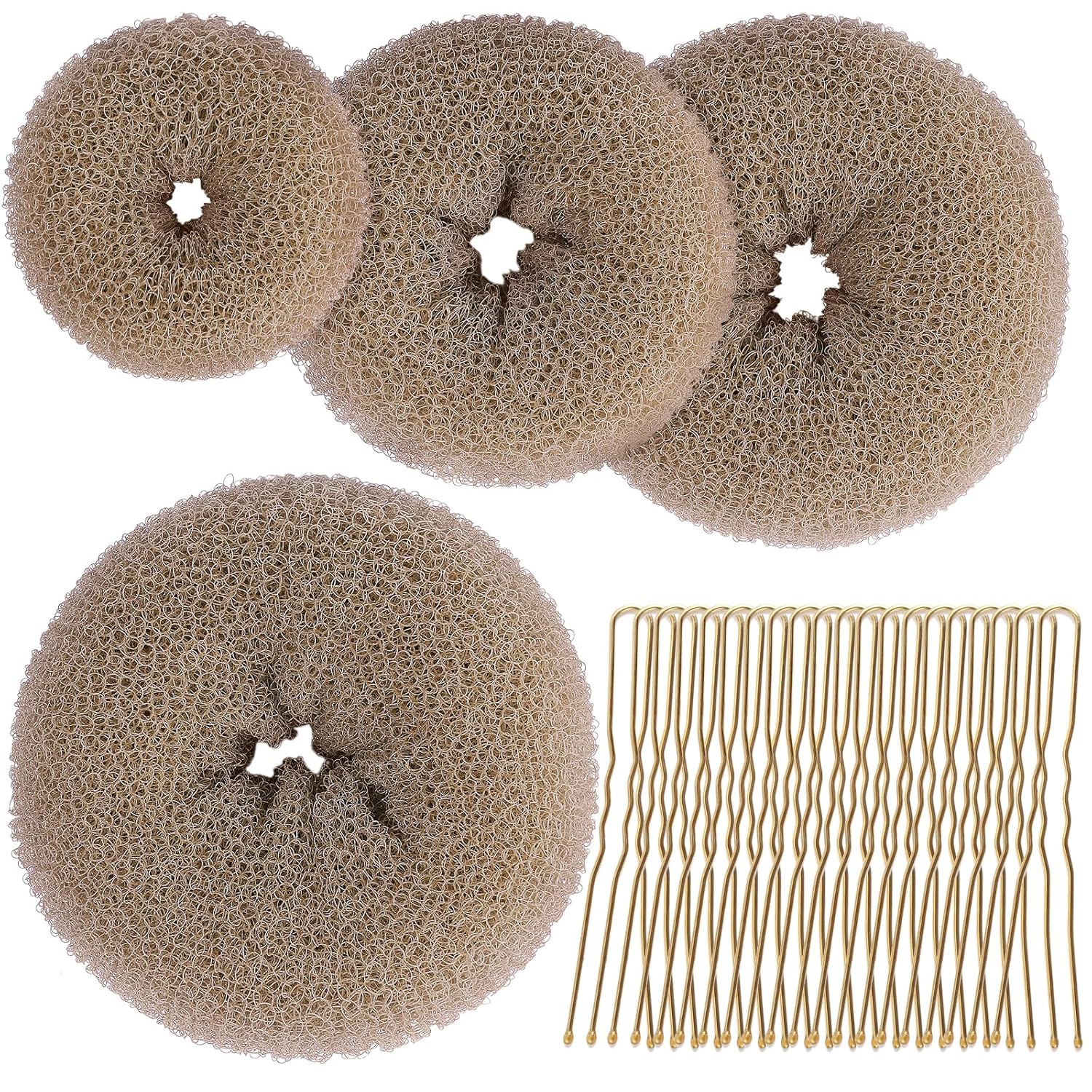 Teenitor Hair Bun Shaper Set, 4Pcs Hair Donut Bun Maker(Extra-large, Large, Medium, Small) with 20 pcs Large Bobby Pins, Tan Brown