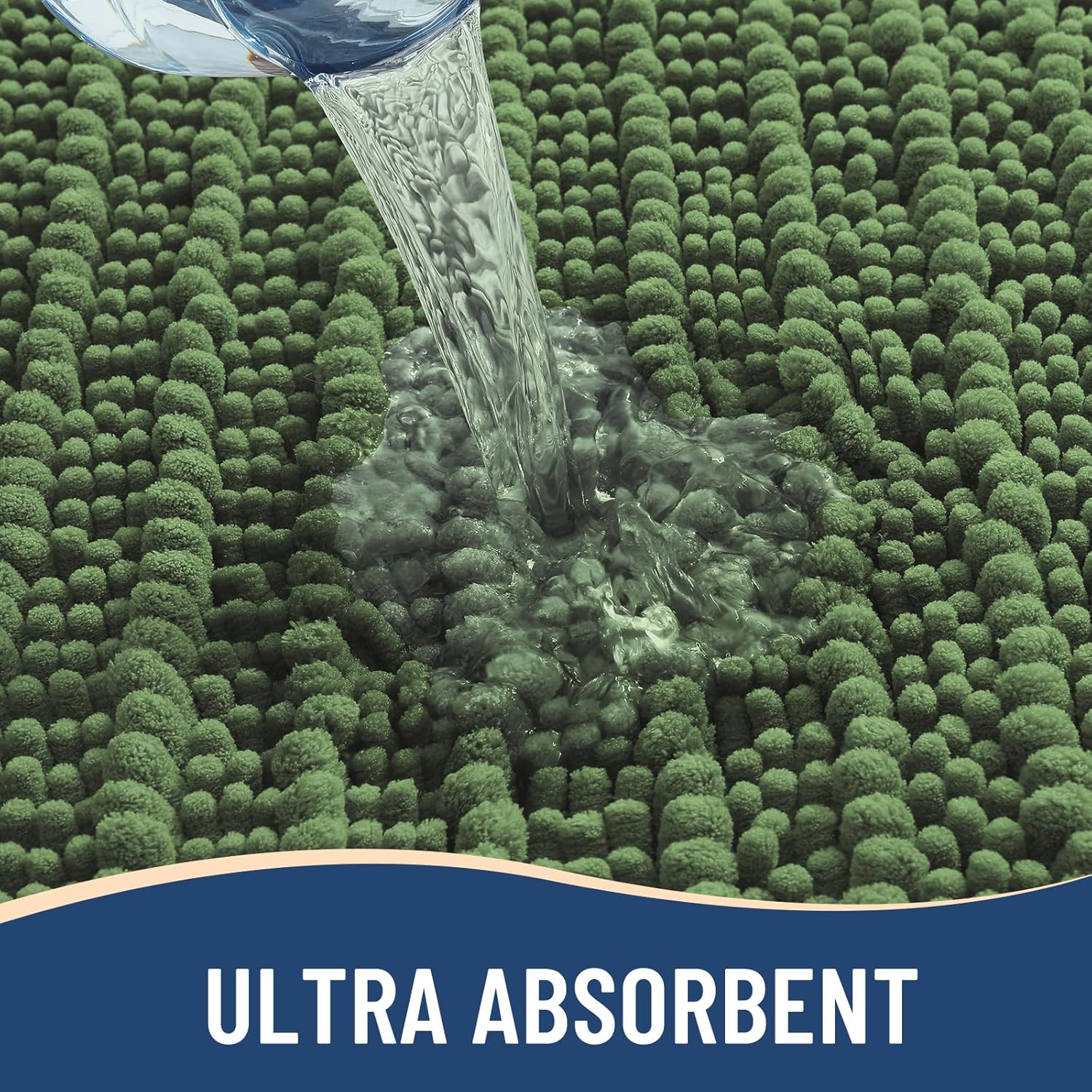 Arotive Luxury Chenille Bathroom Rug Mat, Extra Soft Thick Absorbent Shaggy Bath Rugs, Non-Slip Machine Wash Dry, Plush Bath Mats for Bathroom, Shower and Tub, 30x20, Olive Green