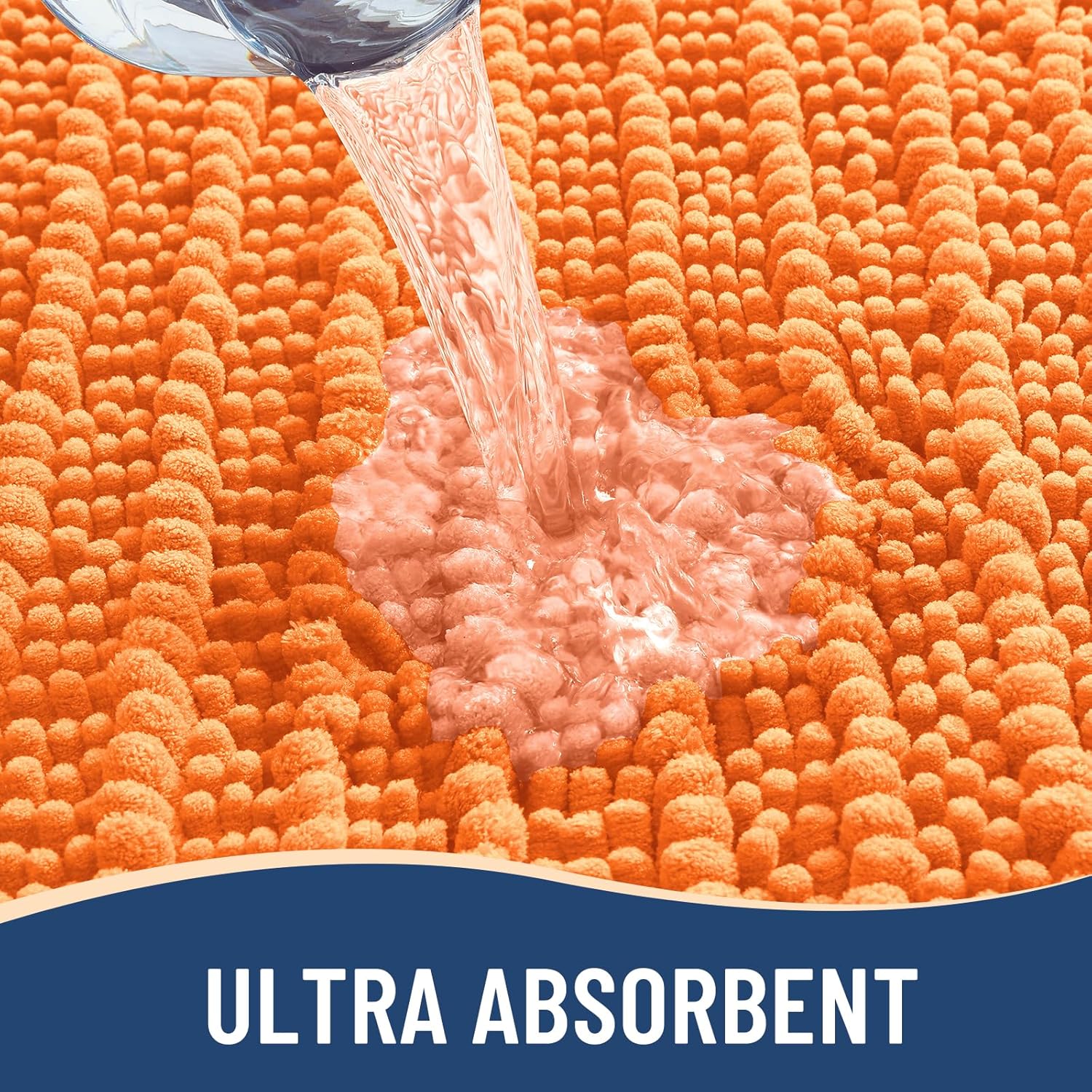 Arotive Luxury Chenille Bathroom Rug Mat, Extra Soft Thick Absorbent Shaggy Bath Rugs, Non-Slip Machine Wash Dry, Plush Bath Mats for Bathroom, Shower and Tub, 24x16, Orange