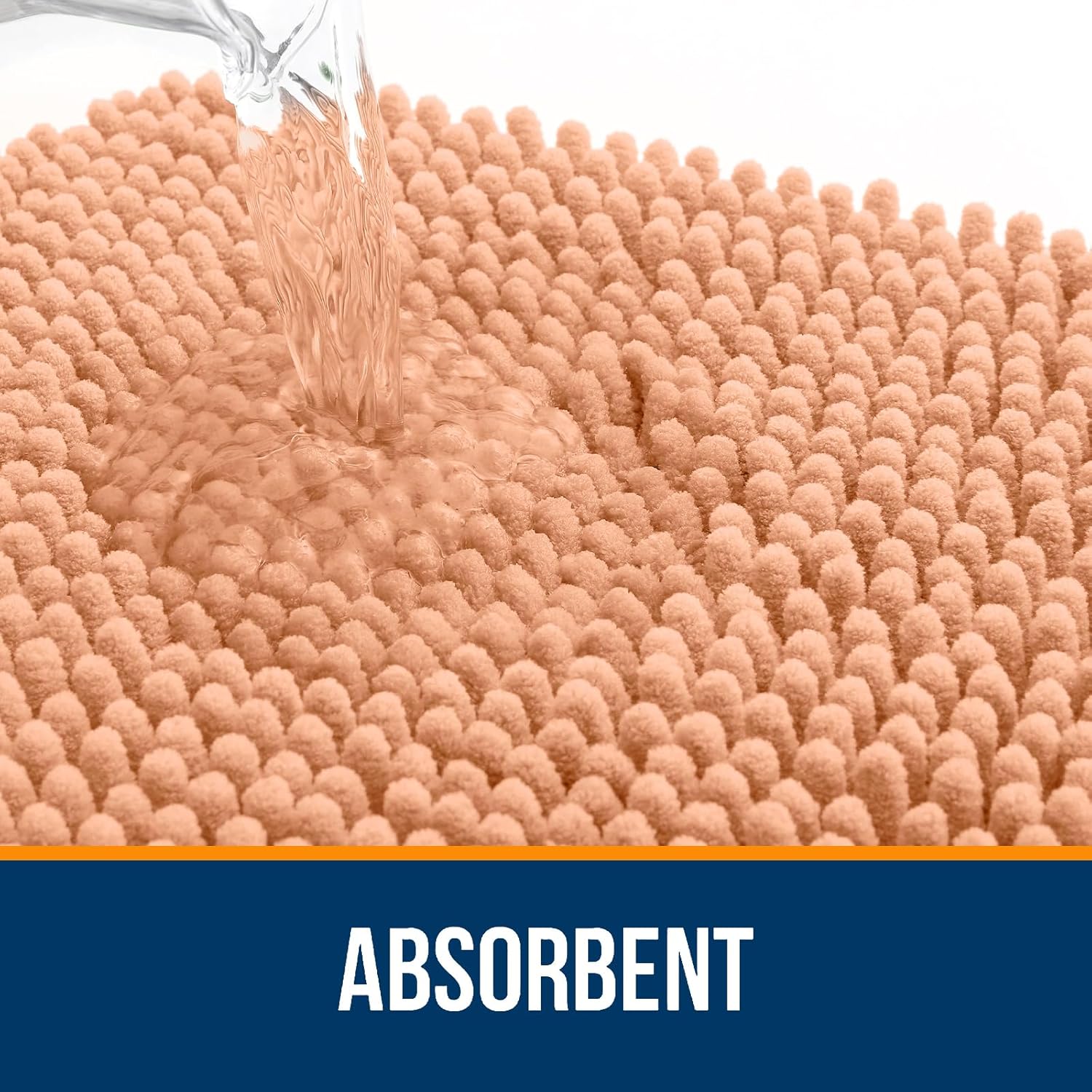 OLANLY Bathroom Rugs 24x16, Extra Soft Absorbent Chenille Bath Rugs, Rubber Backing Quick Dry, Machine Washable Bath Mats for Bathroom Floor, Tub and Shower, Home Decor Accessories, Peach
