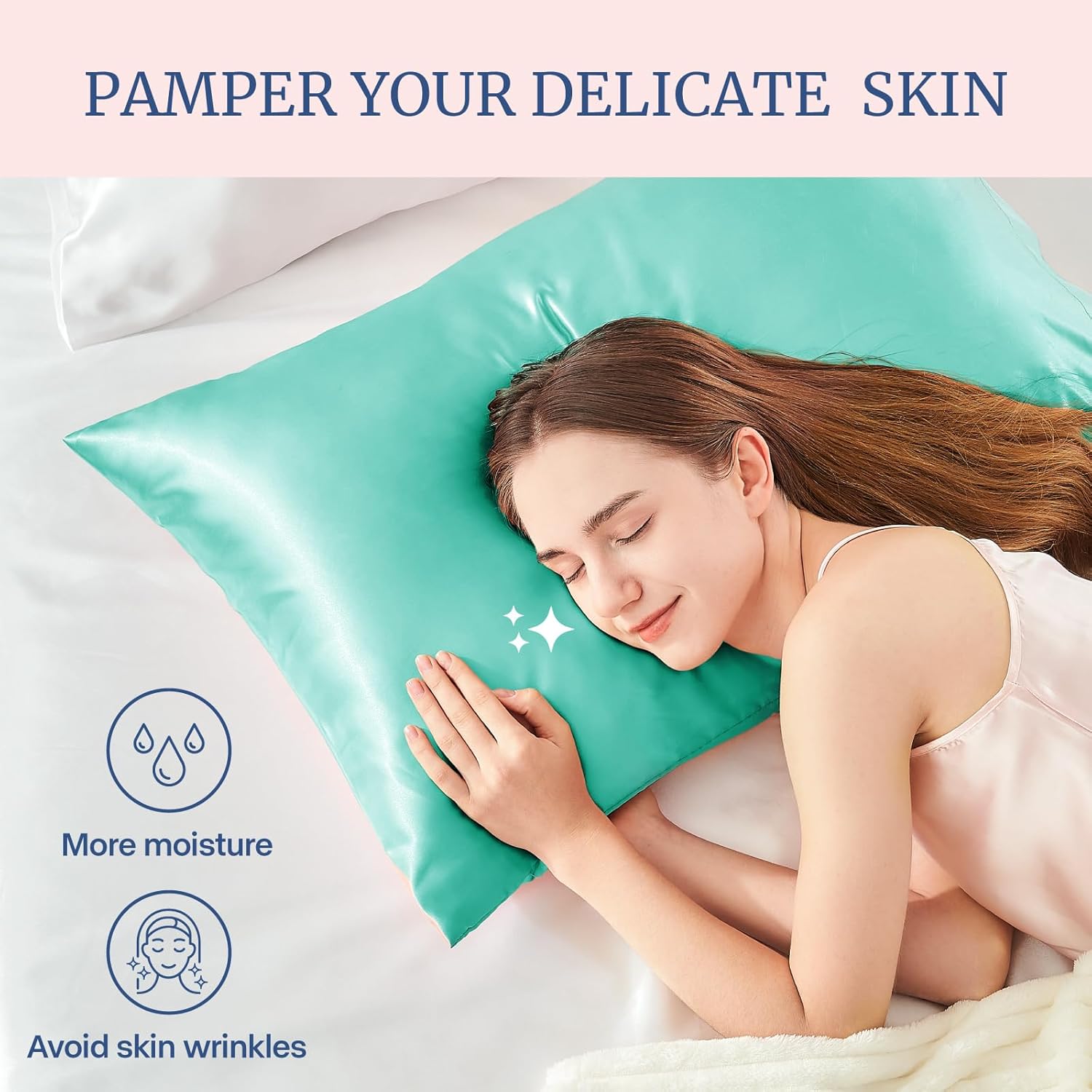 BEDELITE Satin Pillowcase for Hair and Skin, Super Soft and Cooling Similar to Silk Pillow Cases 2 Pack with Envelope Closure, Gift for Women Men(20"x36" King Size, Turquoise)