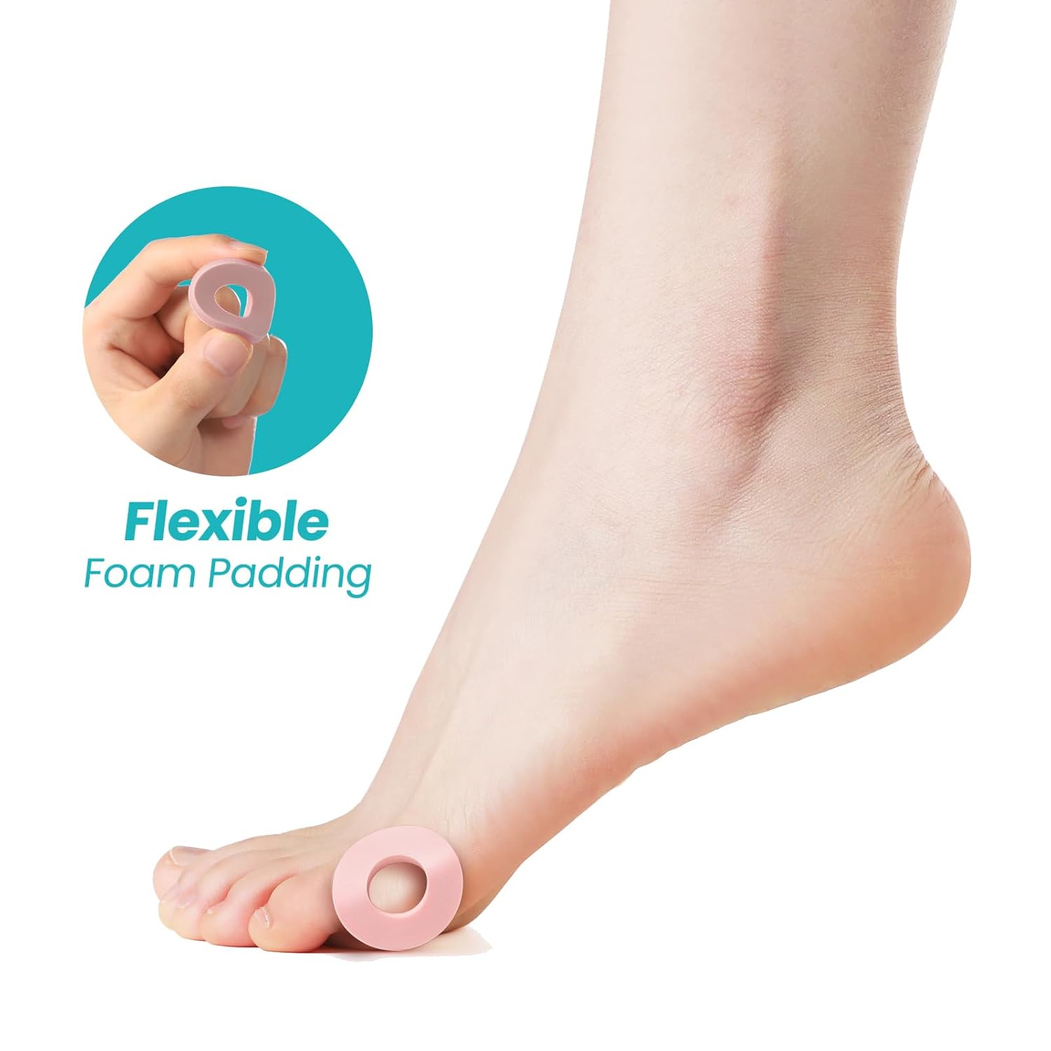 Callus Cushions for Bottom of Foot - Round Foam Padding with Water-Resistant Self-Stick Adhesive - Corn Cushions for Toes and Feet, Reduce Pain, Pressure and Friction from Shoes (Pink, 64 Count)
