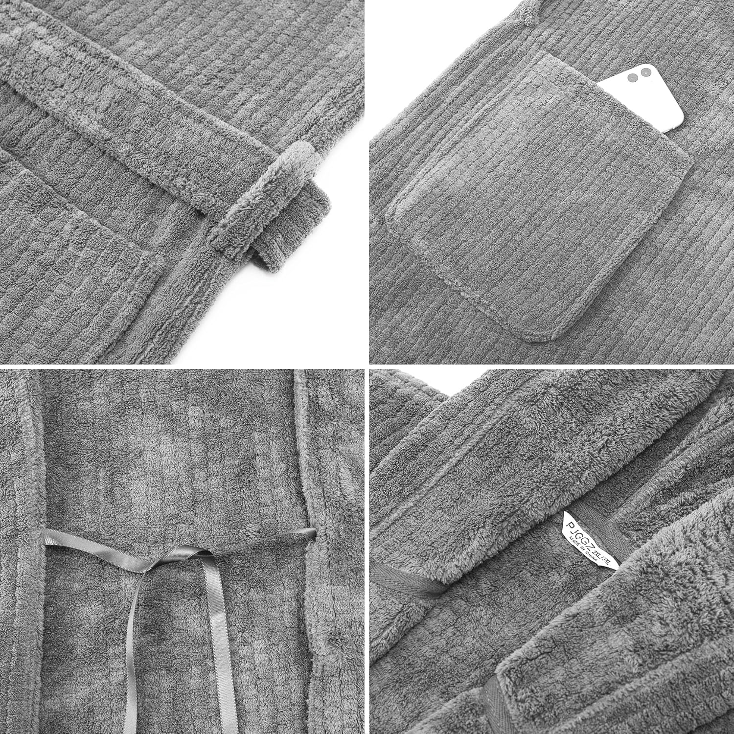 - HOODED BATHROBES WITH POCKETS: The hood is perfect for keeping the head warm during the chilly mornings. Slip front pockets are perfect for storing all your stuff with convenience, or just for keeping your hands warm in this bathrobe