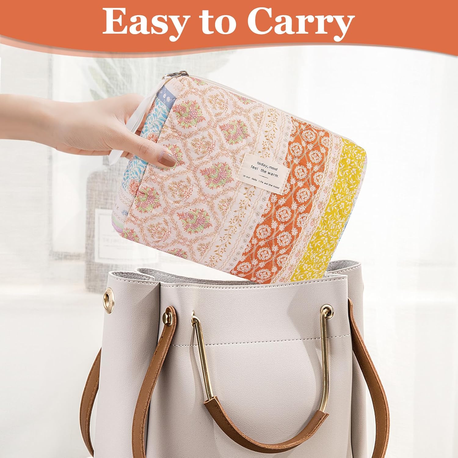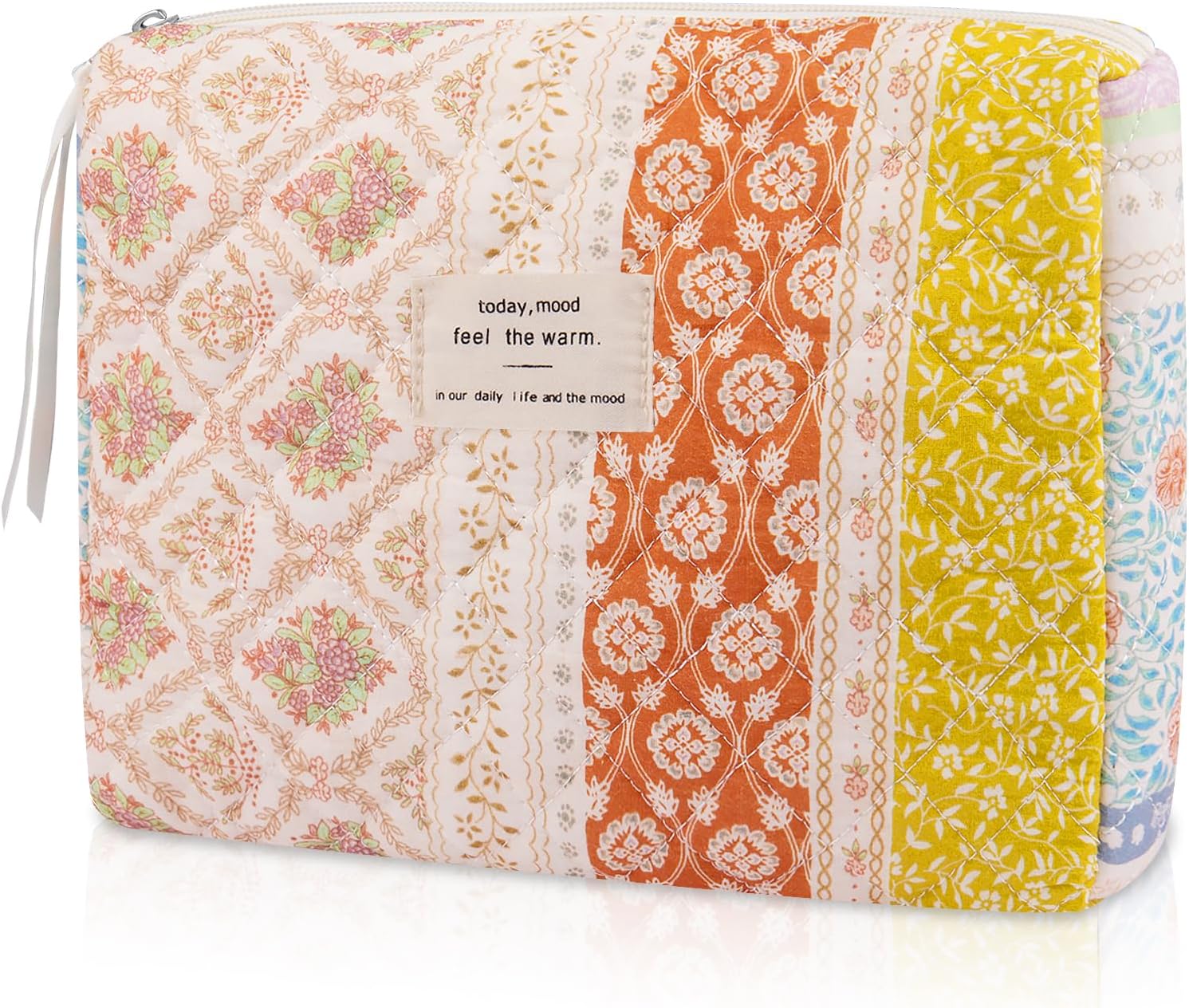 Floral Makeup Bag, Small Cosmetic Bag for Women Girls, Cute Cotton Makeup Bag, Quilted Makeup Bags, Flower Travel Toiletry Organizer Bag(Color-Coded Floral)