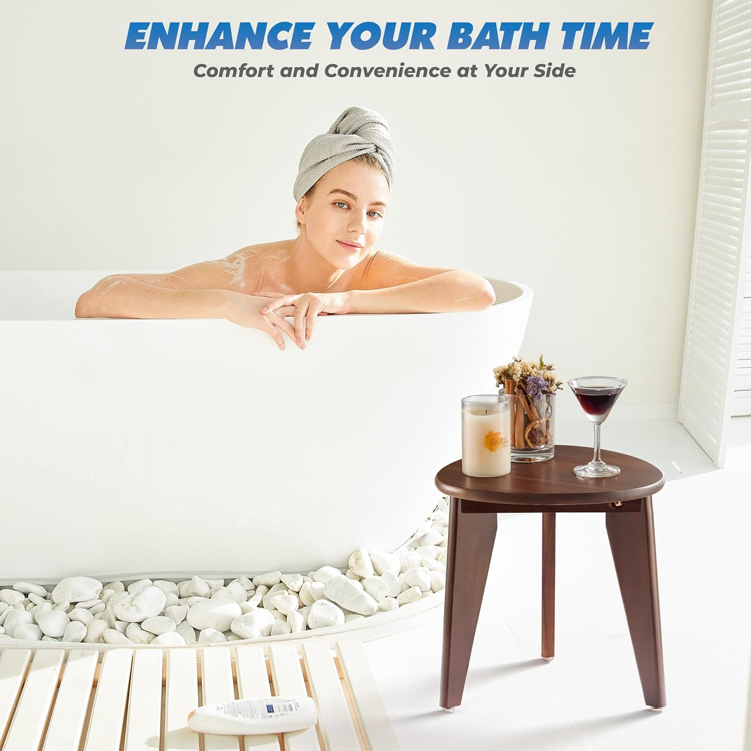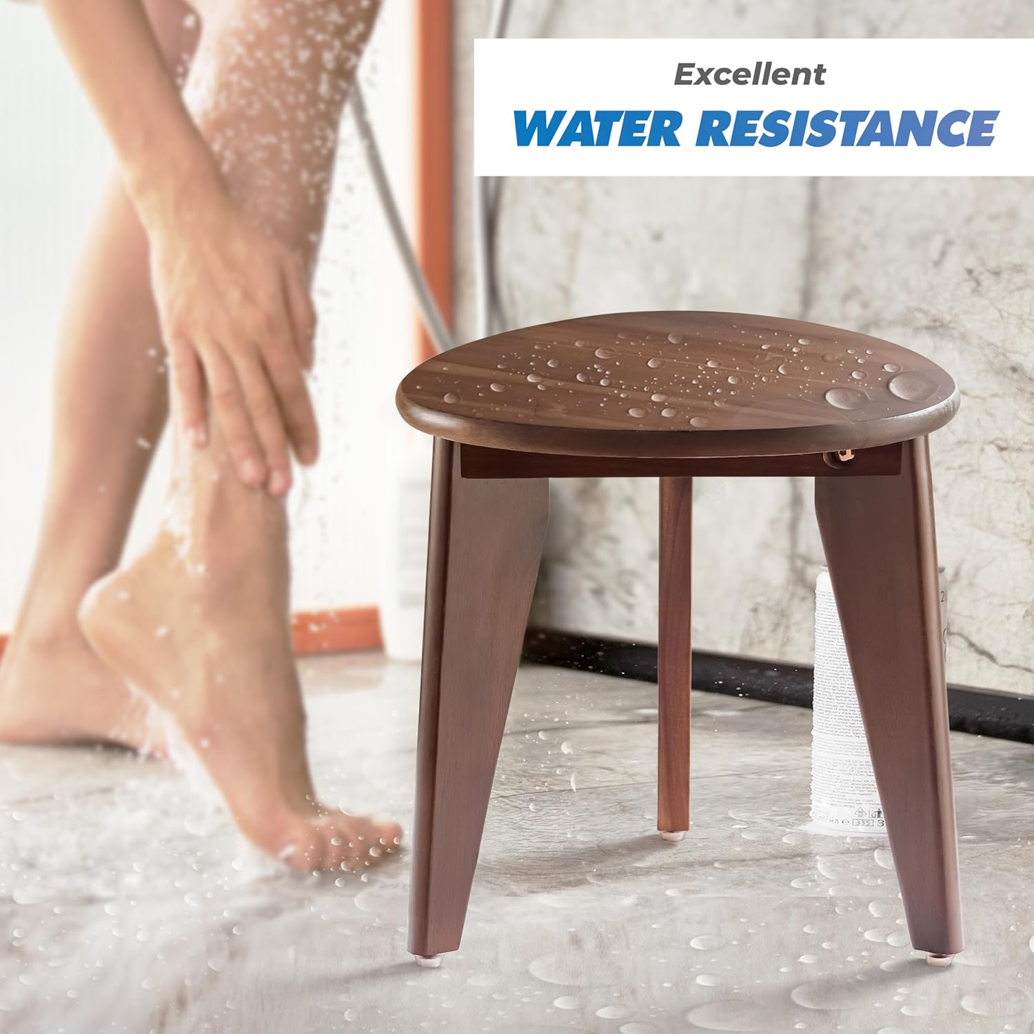 BLUEWEST Shower Foot Stool for Shaving Legs, Acacia Wood Shower Foot Rest (Walnut, Round Seat)