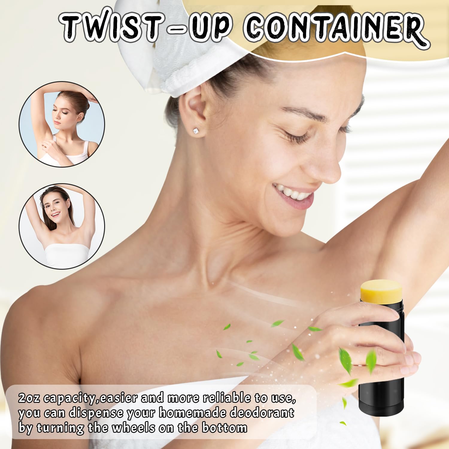 15 Pack 2 oz/60ml Plastic Deodorant Containers,Empty Round Twist-Up Solid Stick Tube Container for Homemade Deodorant,Shaving Soap Stick,Heel Lip Balm,Solid Lotion Bars-Top Filling,Black