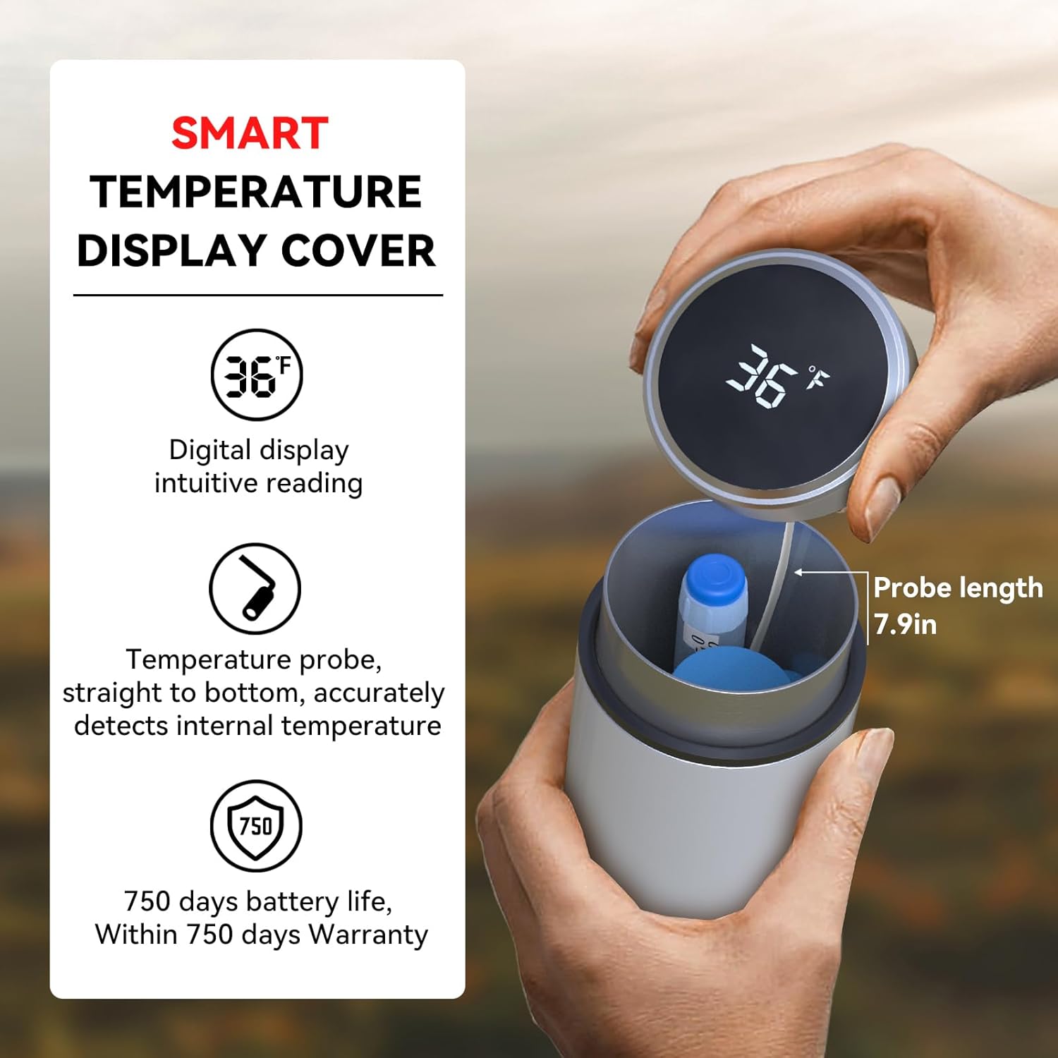 - What are the advantages of a digital display thermometer : The 20 cm(7.87 in) long temperature sensor can detect the temperature at the bottom of the cooler cup, which is the most accurate temperature detection method on the market. With a touch screen display, you can check whether the internal temperature of the cooler is within a safe range at any time when traveling or doing outdoor activities, and enjoy your trip more safely