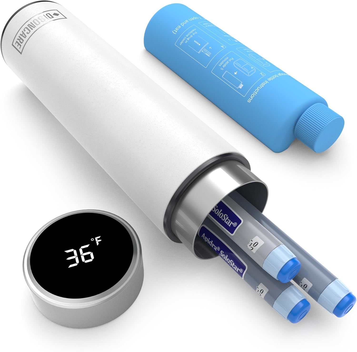 DISONCARE Odyssey 3Pens Insulin Cooler Travel Case Digital Display, Medication Cooler for Travel, TSA Approved Ice PackS, Diabetic Medical Organizer, EpiPen Bag with QR Medical Tag (Polar White)
