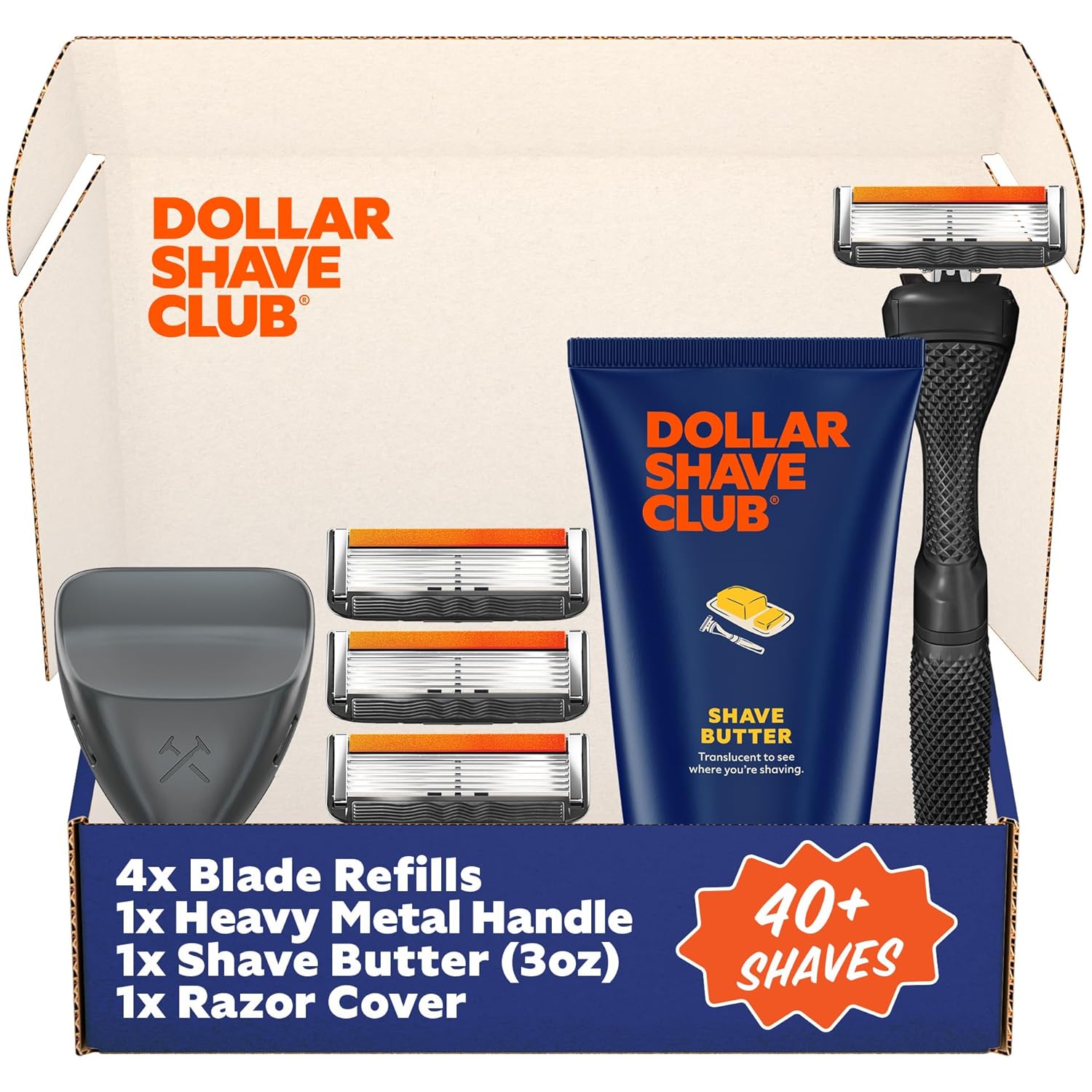 Dollar Shave Club | The Member Exclusive Shave Set | 4 Extra Close Refill Cartridges, 1 Handle (Black), 1 Shave Butter 3 ounce, 1 Razor Cover, Razors for Men