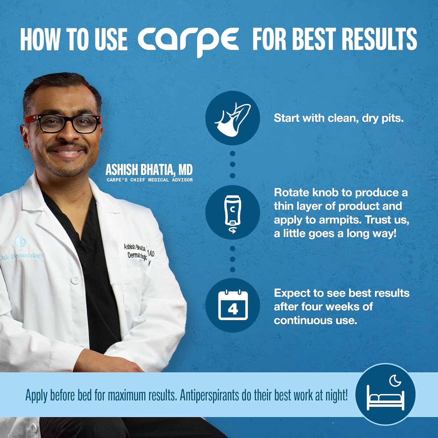 - EASY TO USE ANTIPERSPIRANT DEODORANT: With a thin layer of Carpe Antiperspirant Lotion you can reduce sweat with safe and effective ingredients. Apply our sweat control deodorant before bed for best results and say goodbye to your armpit sweat & smelly underarms without the downsides of prescription oral treatments or iontophoresis.