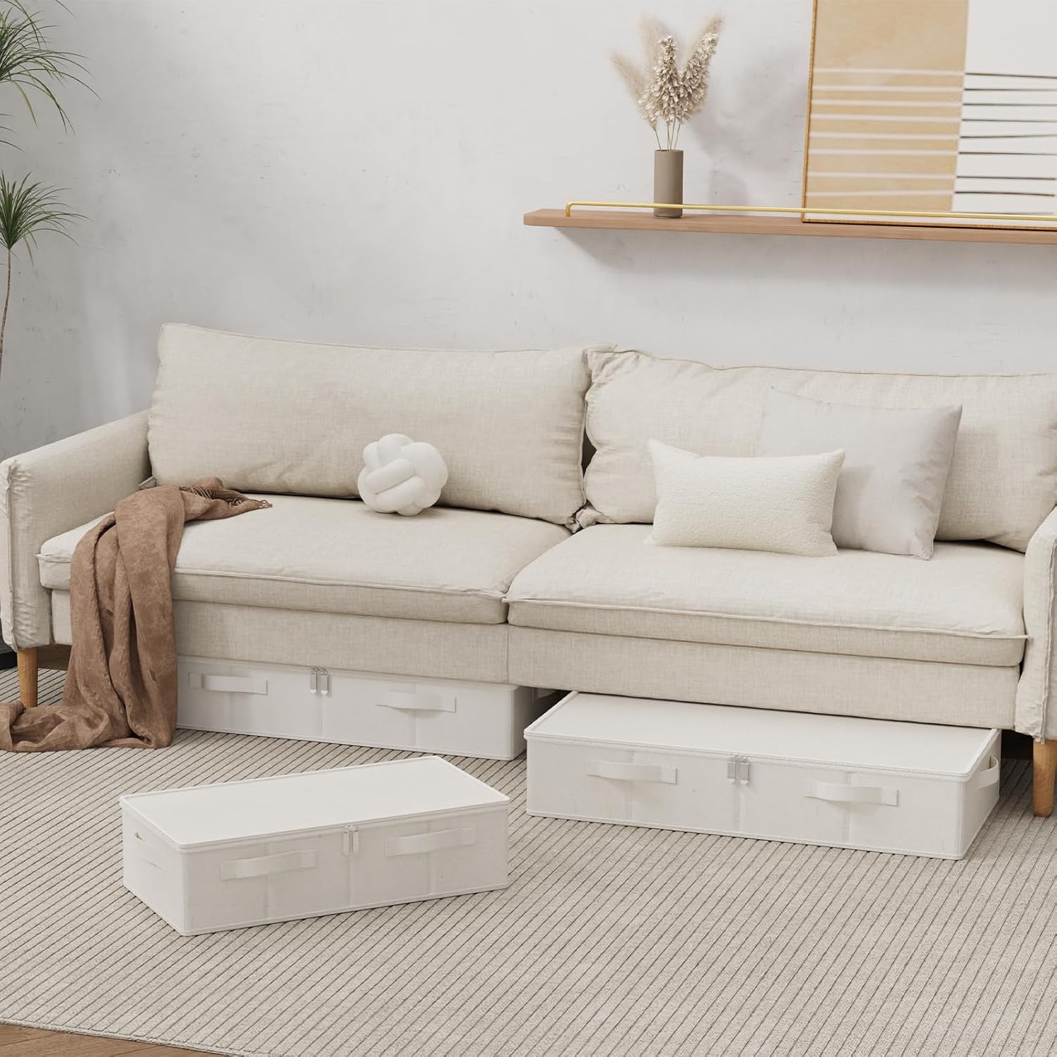 Underbed Storage Bins Drawer, Foldable Under Bed Boxes, Fabric Closet Container with Lid for Organizing Clothes, Sheets, Blankets, Comforter, 31.4x15.7x5.9in, Beige, 3 Pack
