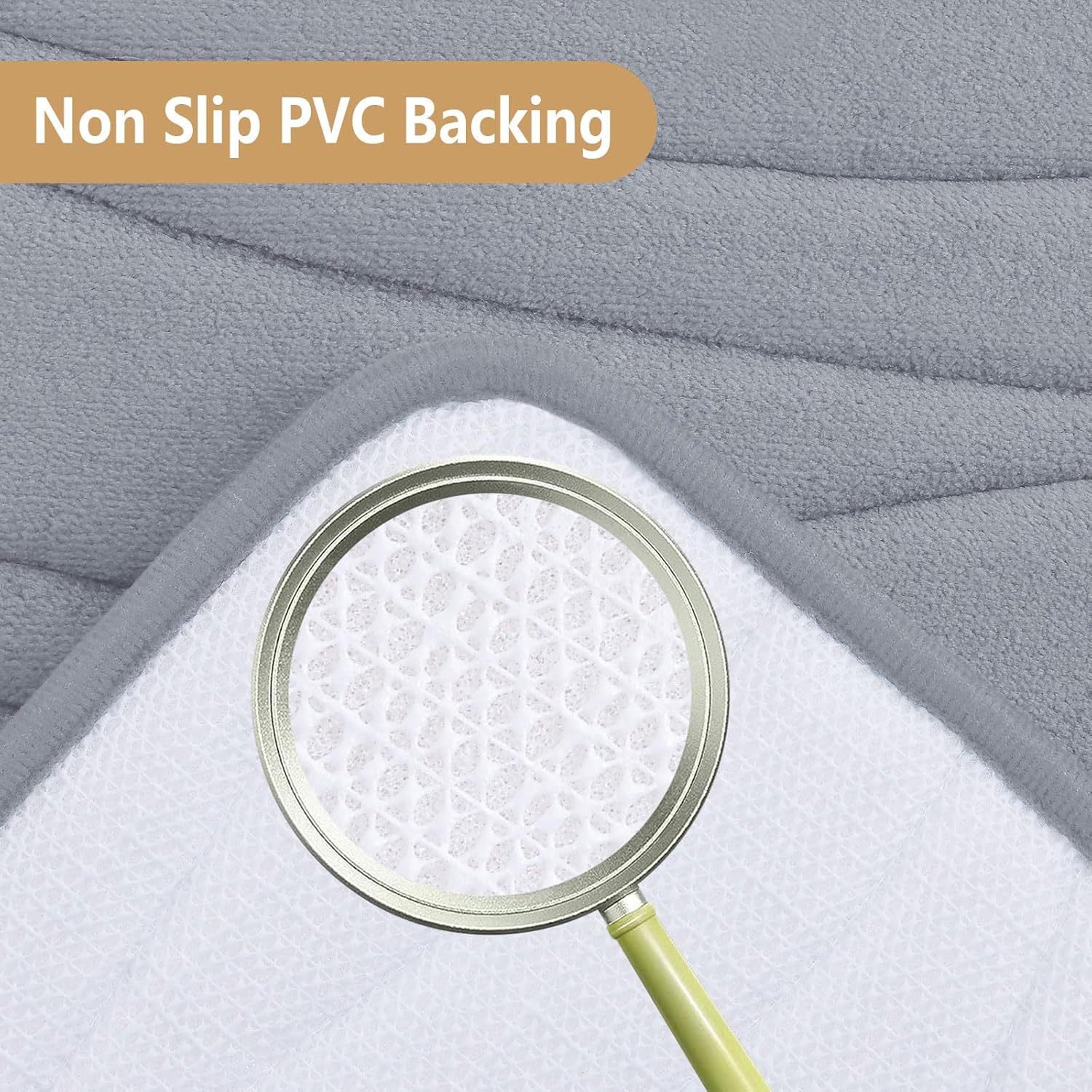 - Non-Slip Backing: Our memory foam bath rug features a robust and firm PVC backing that stops shifting and skidding and ensures long-lasting durability. WARNING: Place mat on CLEAN DRY SMOOTH FLOOR only. Water under bath mats can cause it to slip. Keep bottom of mat dry. Before using bath carpet, test with foot to ensure it doesn't move