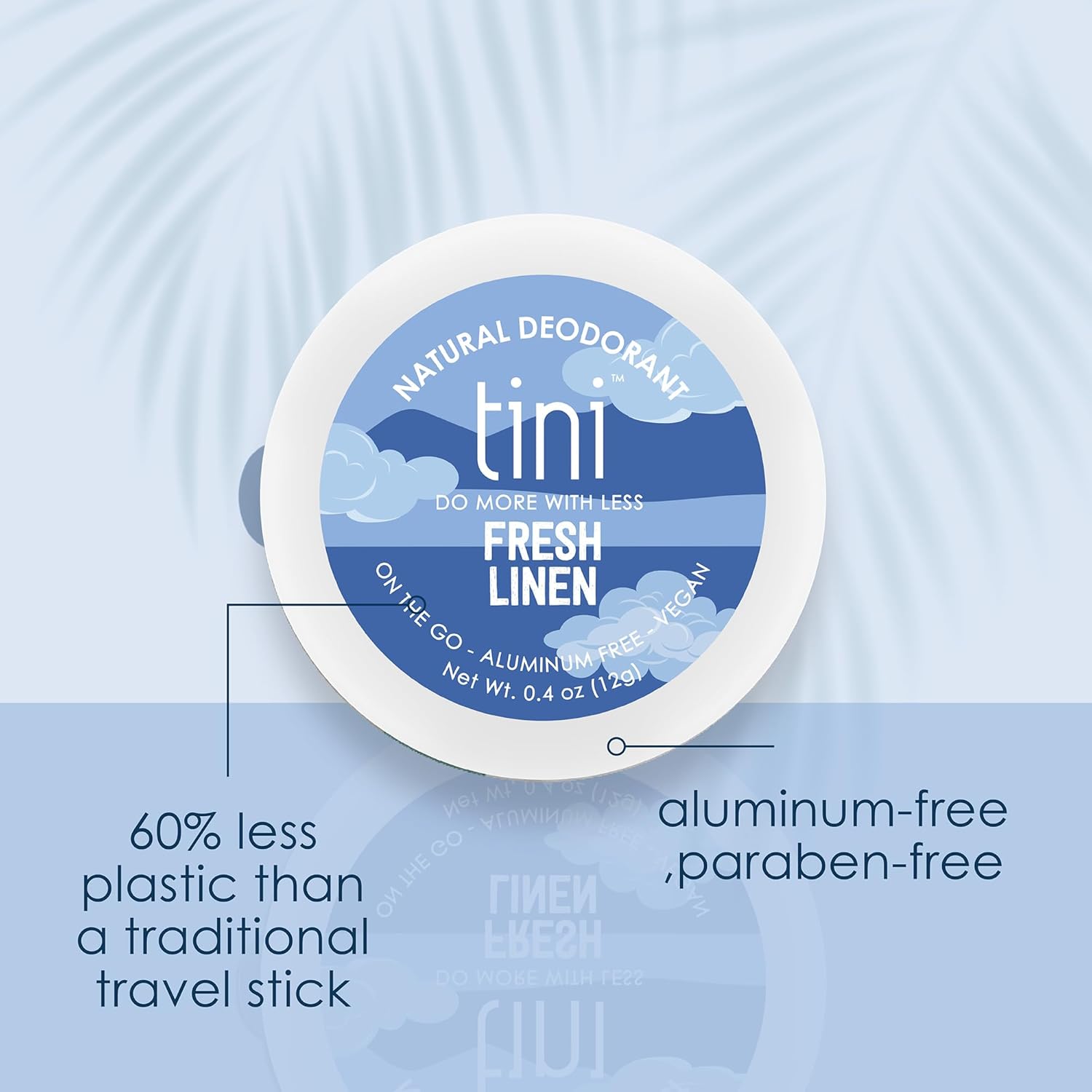 Tini Naturals Mini Travel Size Deodorant, Unisex Aluminum Free Deodorant with Coconut Oil & Shea Butter, 0.4oz each (4 Pack), Fresh Linen Scent