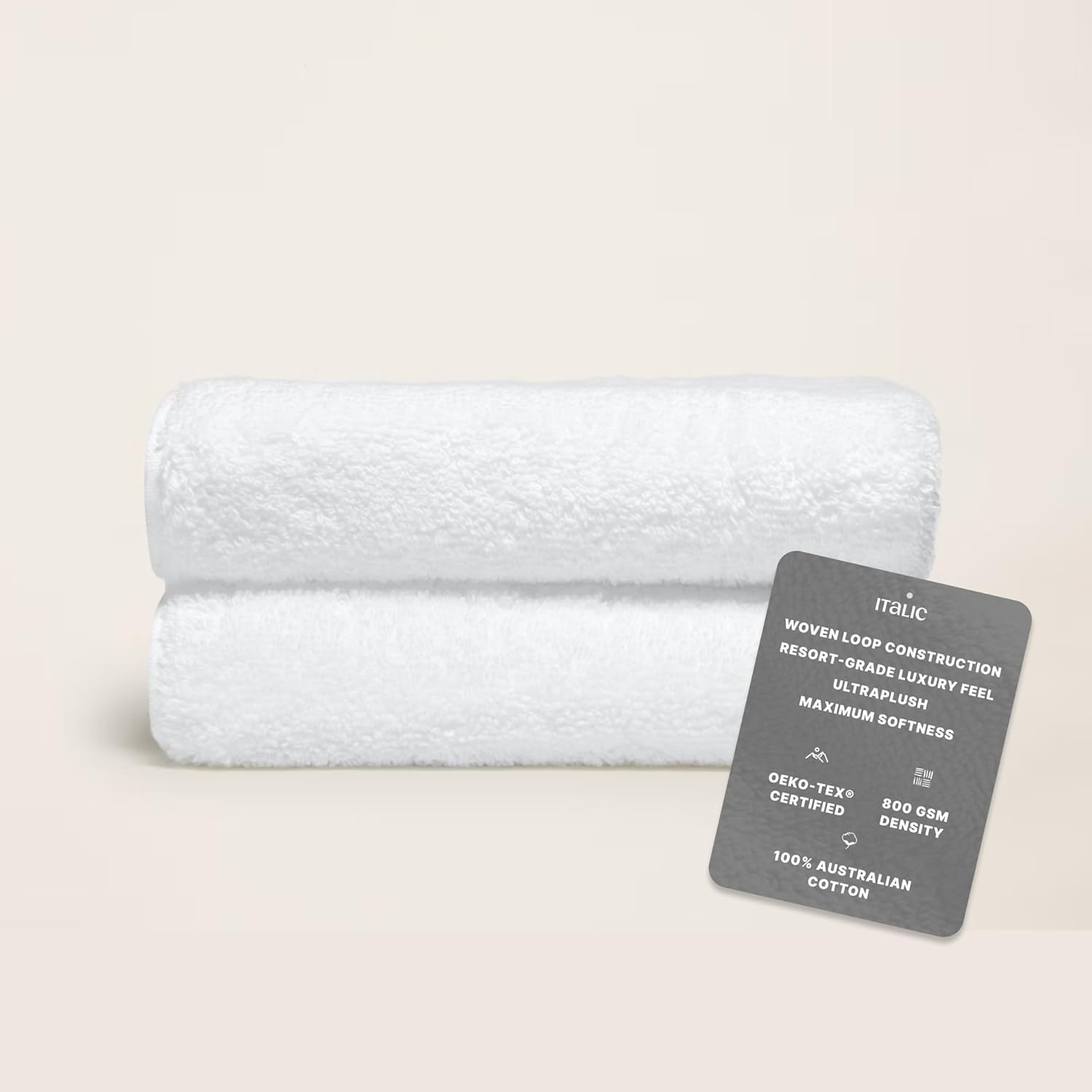 Italic Ultraplush 100% Australian Cotton Hand Towels - Set of 2 Luxury Hand Towels, Ultra Soft and Highly Absorbent 800GSM Towels for Bathroom,Shower, Hotel, and Spa (White)