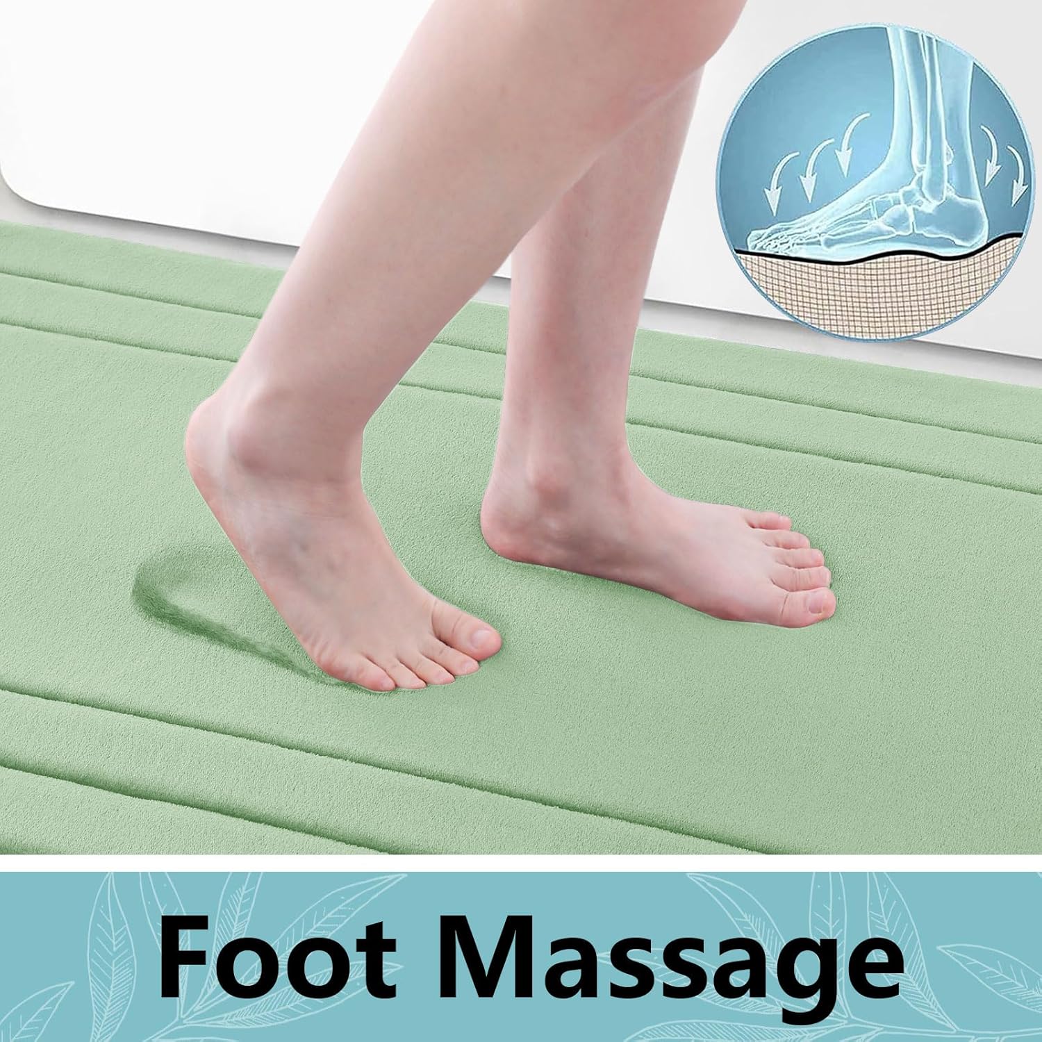 Arotive Memory Foam Bathroom Rug Mat 44x24, Ultra Soft and Absorbent Bath Mat, Machine Wash Dry, Comfortable Bath Rug Carpet for Bathroom Floor, Tub and Shower, Sage Green