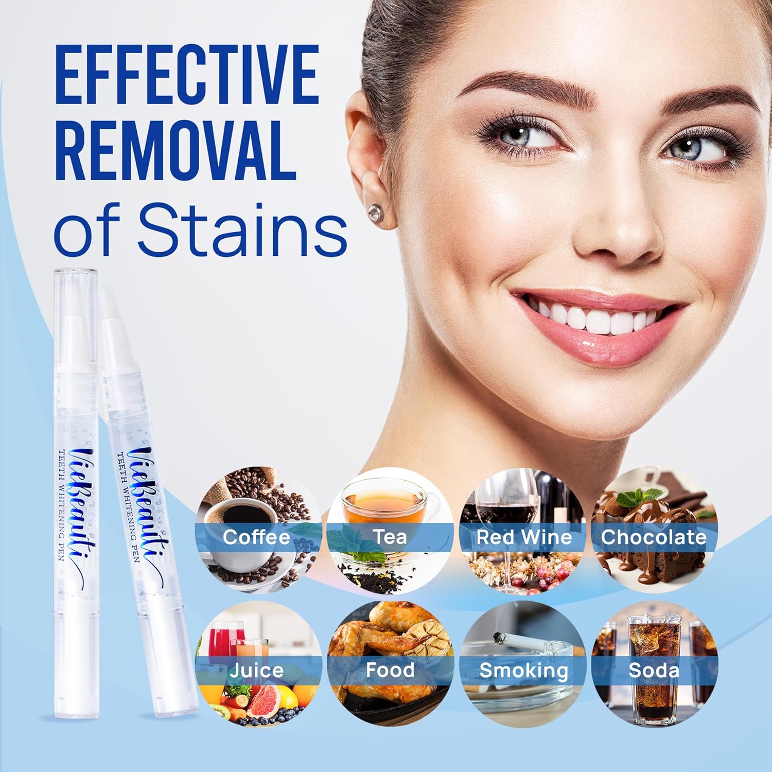 - Remove Years of Stains - Our professional teeth whitening pen can effectively and quickly remove years of stains caused by coffee, tea, wine, smoking, soda and more. Its natural mint flavor will keep your mouth feeling fresh!