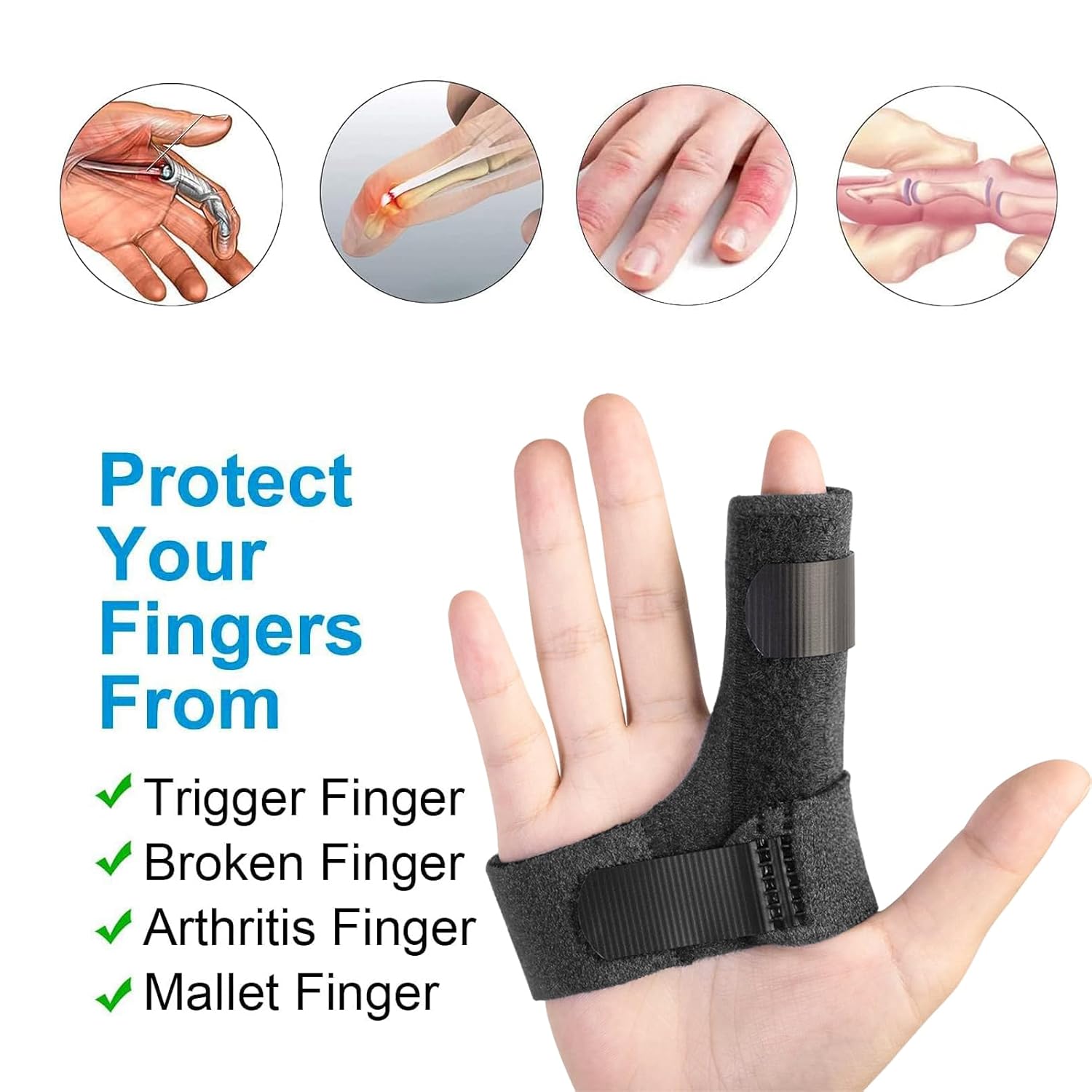 Sumifun Finger Brace, Trigger Finger Splint for Index Middle Ring Pinky Finger Arthritis Pain, Tendon Injury, Broken Mallet Finger Stabilizer Supports for Dislocated Knuckle Immobilizer Wrap,Black