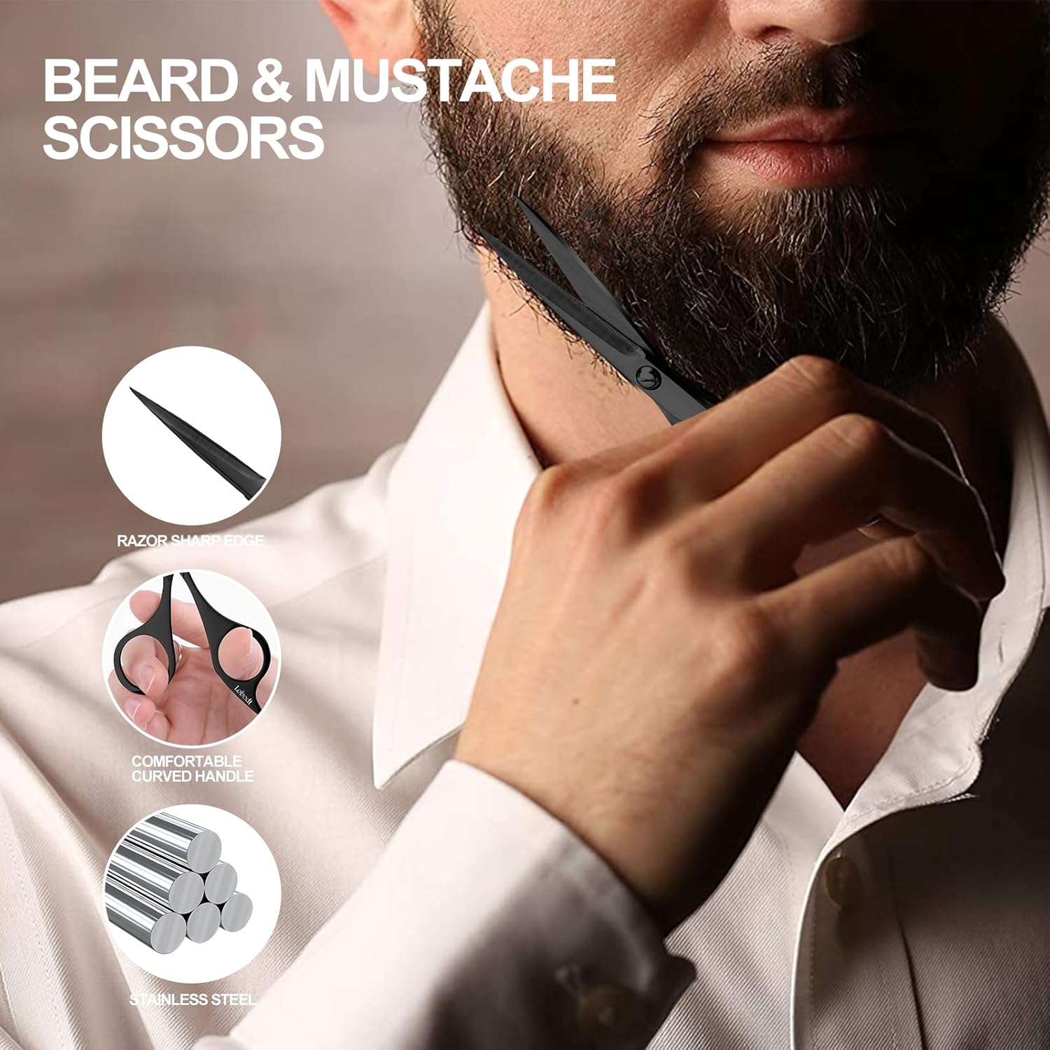 - [Sharp Detail Scissors] : With slender blades, it is easy to trim in narrow areas. The sharp blades can cut hair in an instant, making it very suitable for trimming eyebrows, eyelashes, beards, ear/nose hair, facial hair, and personal care. Be careful not to scratch your skin when using. Please keep it out of the reach of children to avoid sharp injuries.