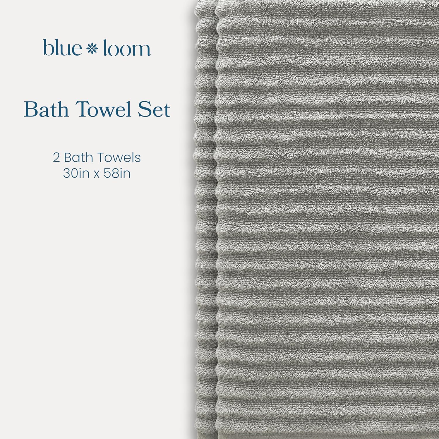 Blue Loom Ribbed Bath Towels Set, 100% Cotton 600 GSM, Soft Absorbent Durable Quick Drying 2 Bath Towels for Bathroom - Mason Set of 2 Stone Grey (58" x 30" Inch)