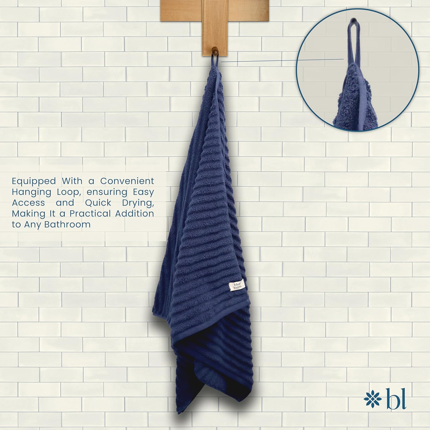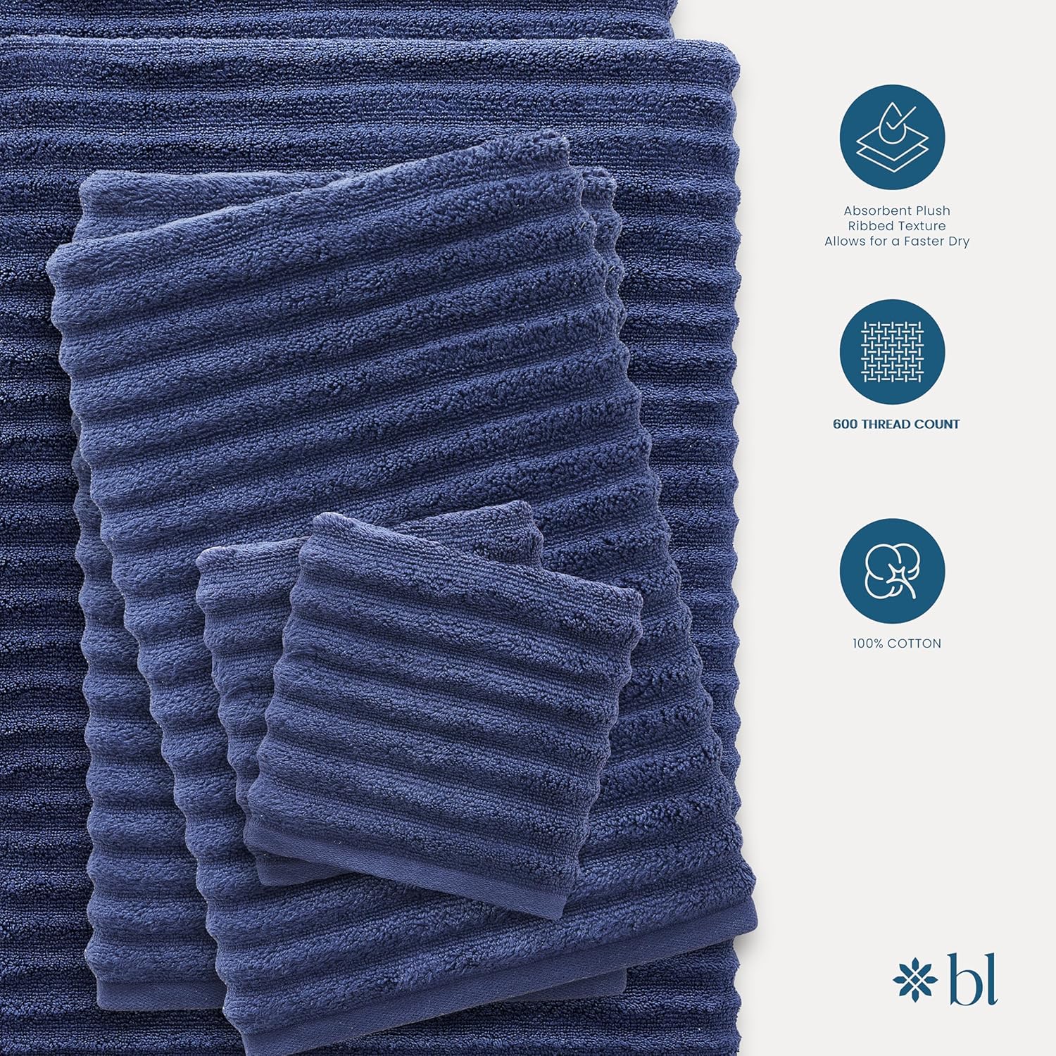 Blue Loom Ribbed Bath Towels Set, 100% Cotton 600GSM, Soft Absorbent Durable 2 Bath Towels, 2 Hand Towels, 2 Wash Cloths for Bathroom - Mason (58" x 30" inch Towels) (Navy, 6 Piece)