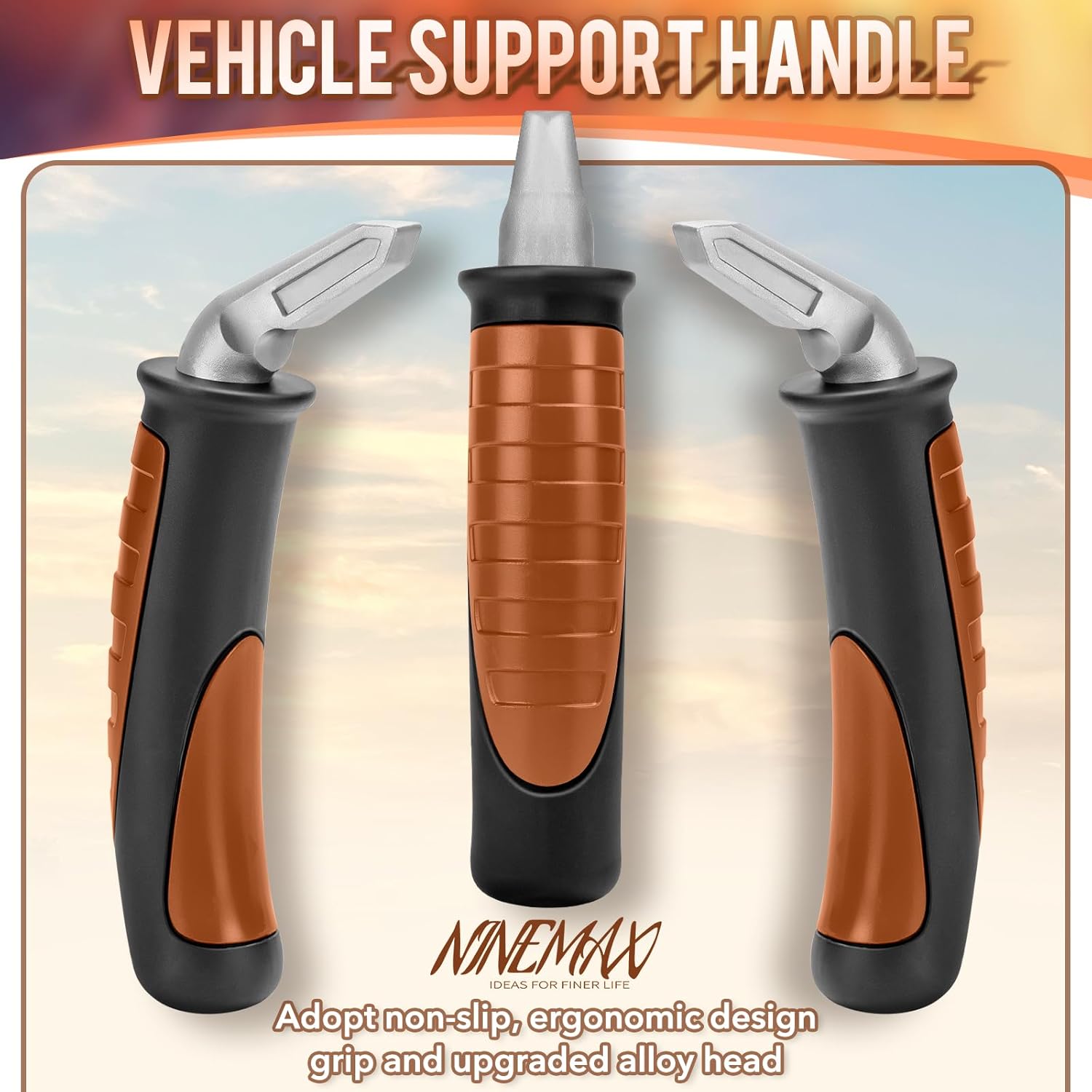 NINEMAX Car Door Handle for Elderly Car Handle Assist Support, Auto Grab Handles, Portable Car Door Cane for Seniors, Handicap (Black, Brown 1 pc)