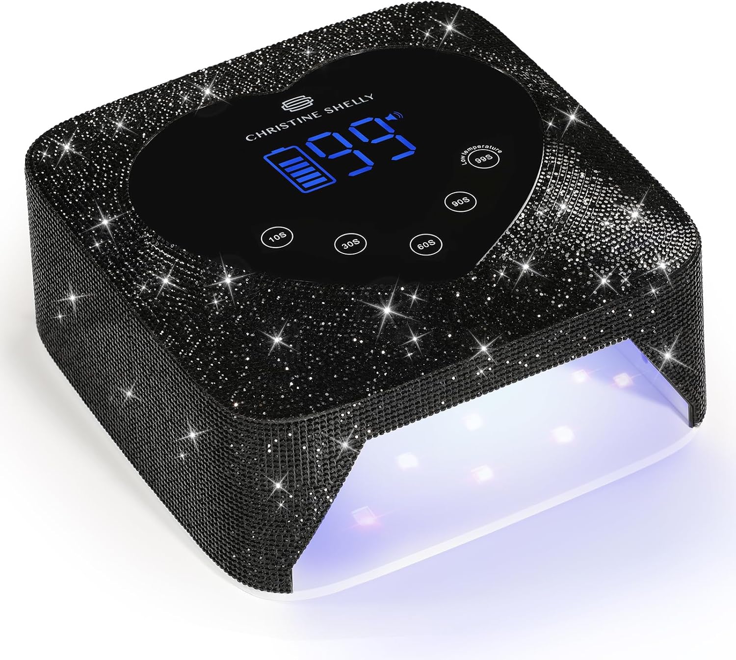 - 【Quick Drying Curing for Superior Nail Care】The CHRISTINE SHELLY sparkly nail lamp is the ultimate solution for optimal nail care. Equipped with 30 dual light source lamp beads, this UV light swiftly cures all types of nail gel brands, including Base Coat, Top Coat, Color Gel, Hard Gels, Poly Gels, Builder, Acrylic, Sculpture gel, and gem glue. Say farewell to harsh lights that can harm your eyes and hands .You can indulge in top-notch salon manicures from the comfort of your own home
