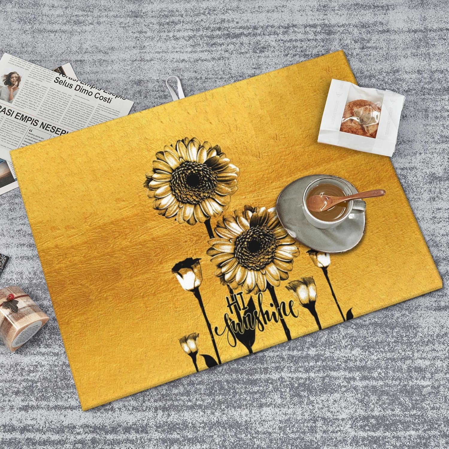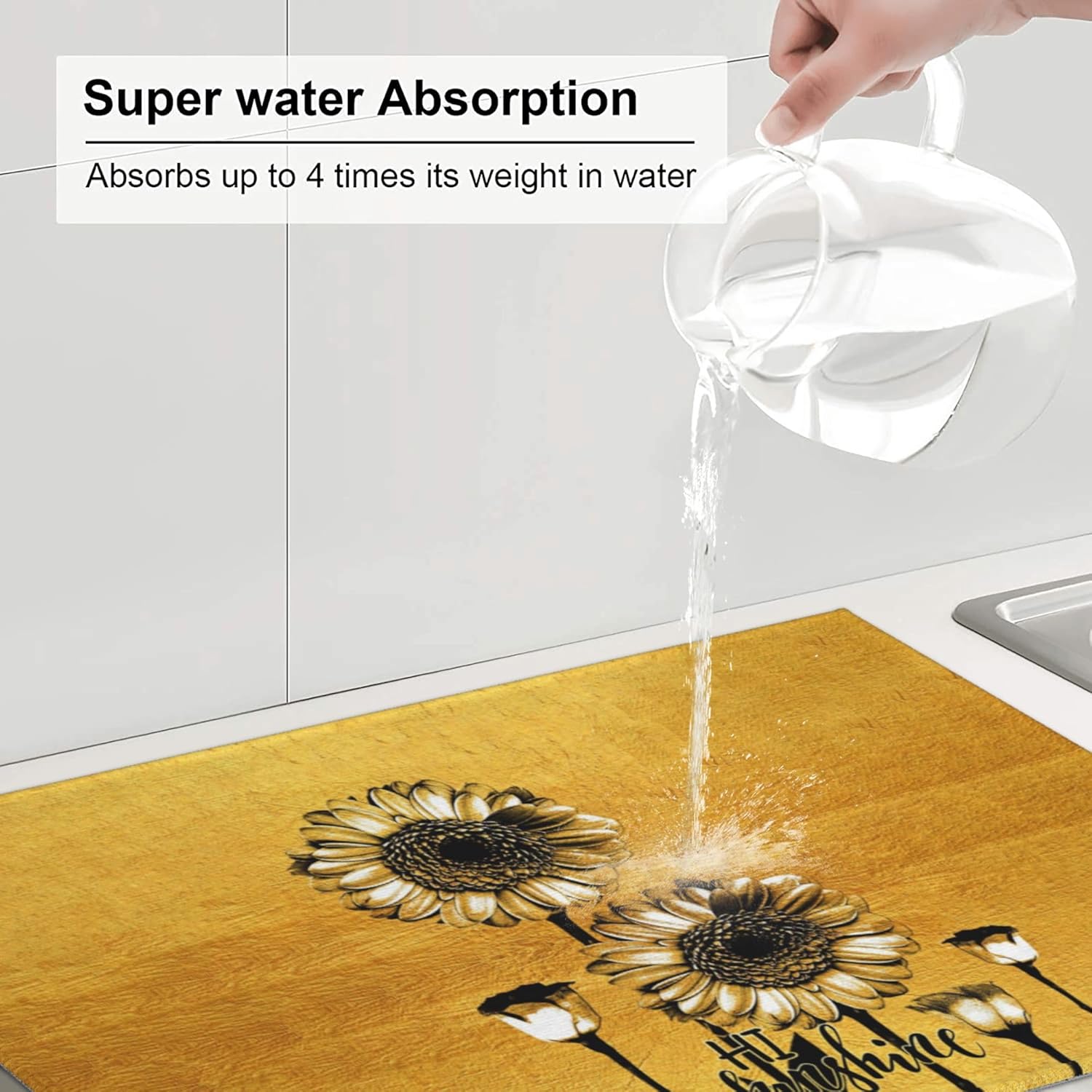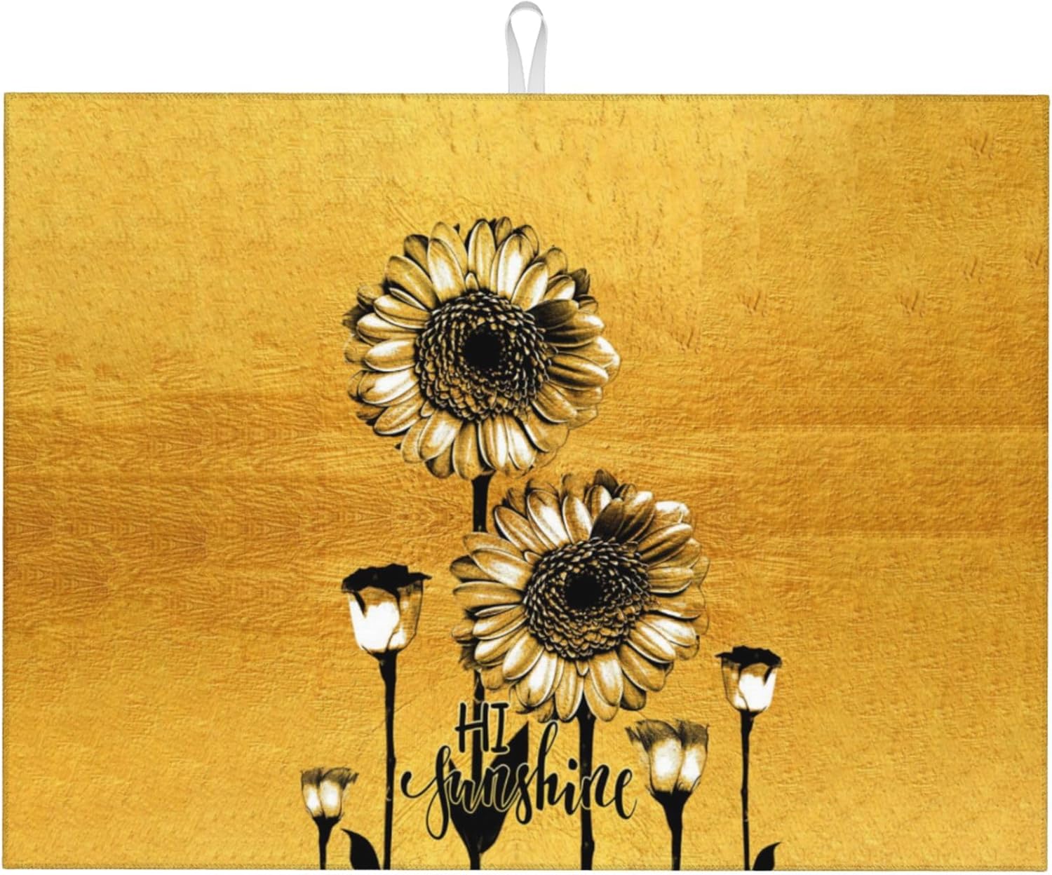 Sunflower Microfiber Dish Drying Mat for Kitchen Counter 18"x24" Black Gold Dishes Pad Dish Drainer Rack Mats Absorbent Washable Reusable