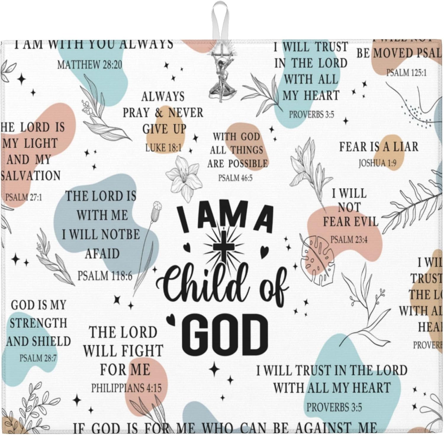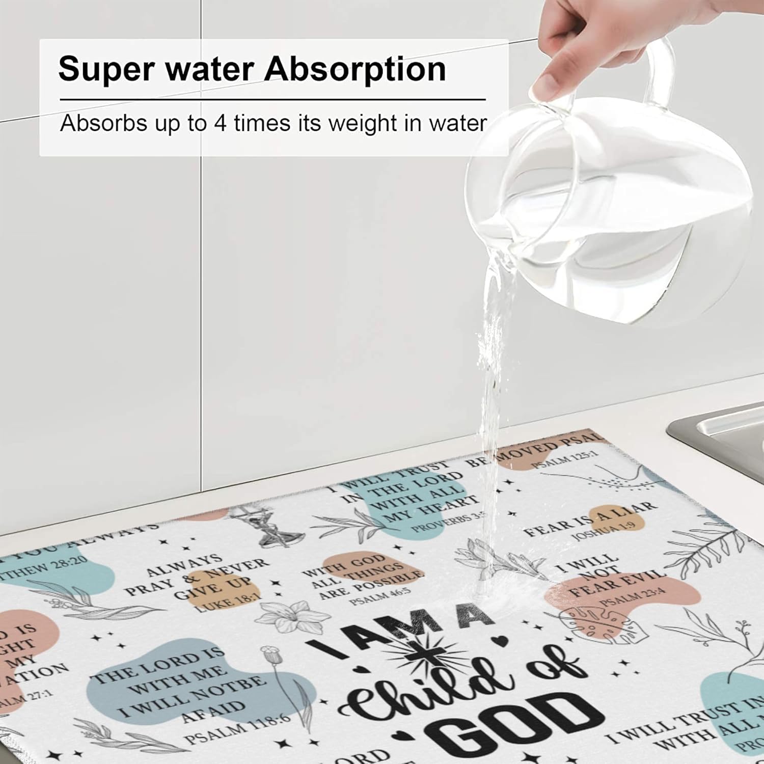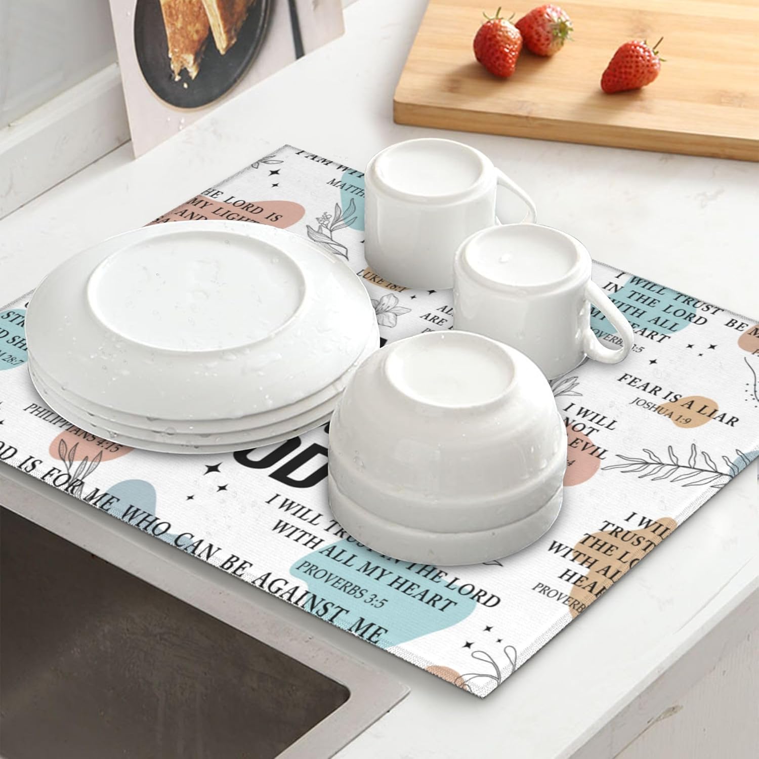 Funny Dish Drying Mat for Kitchen Counter Washable Absorbent Drying Mat Reversible Microfiber God Drying Pad Kitchen Accessories 16"x18"