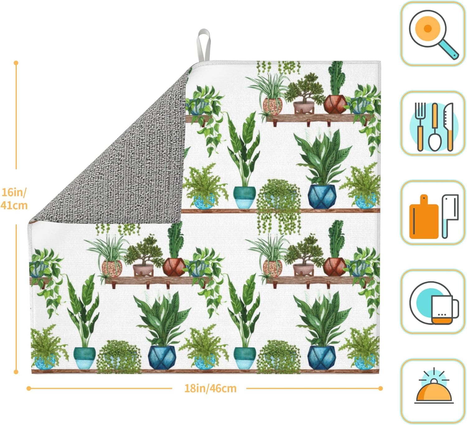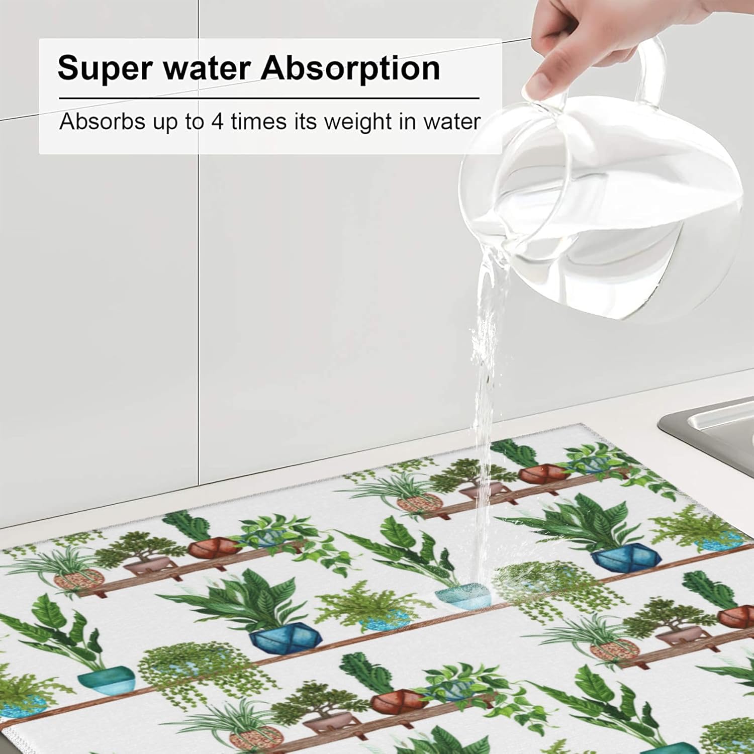 Green Plant Dish Drying Mat for Kitchen Counter Cute Dish Drainer Rack Mats 16"x18" Absorbent Reversible Drying Pad