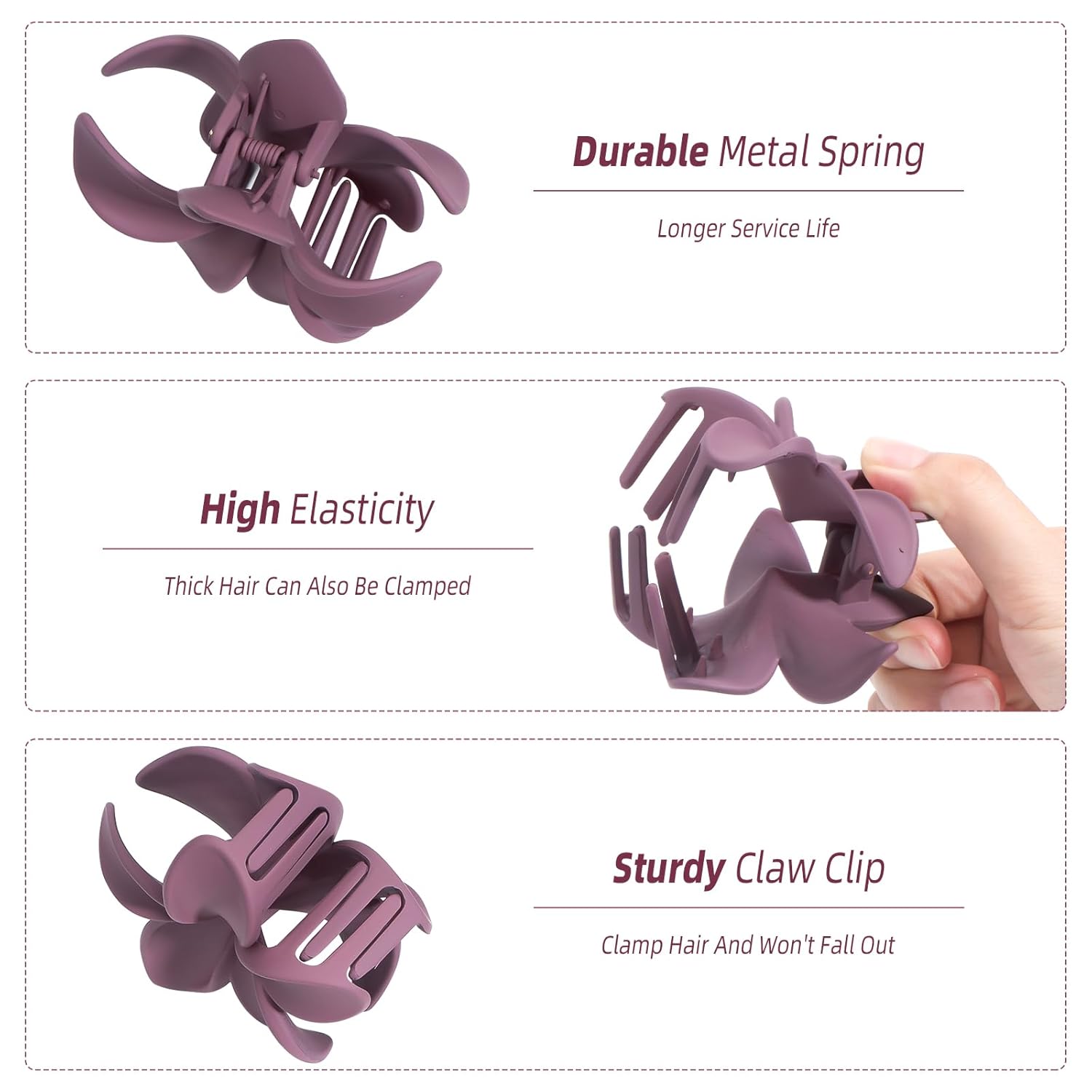 - Each flower claw clips is about 3.4x3.3 inch, the claw clip is crafted from durable plastic and metal spring, featuring an interlocking teeth design to ensure a secure hold without easily slipping off