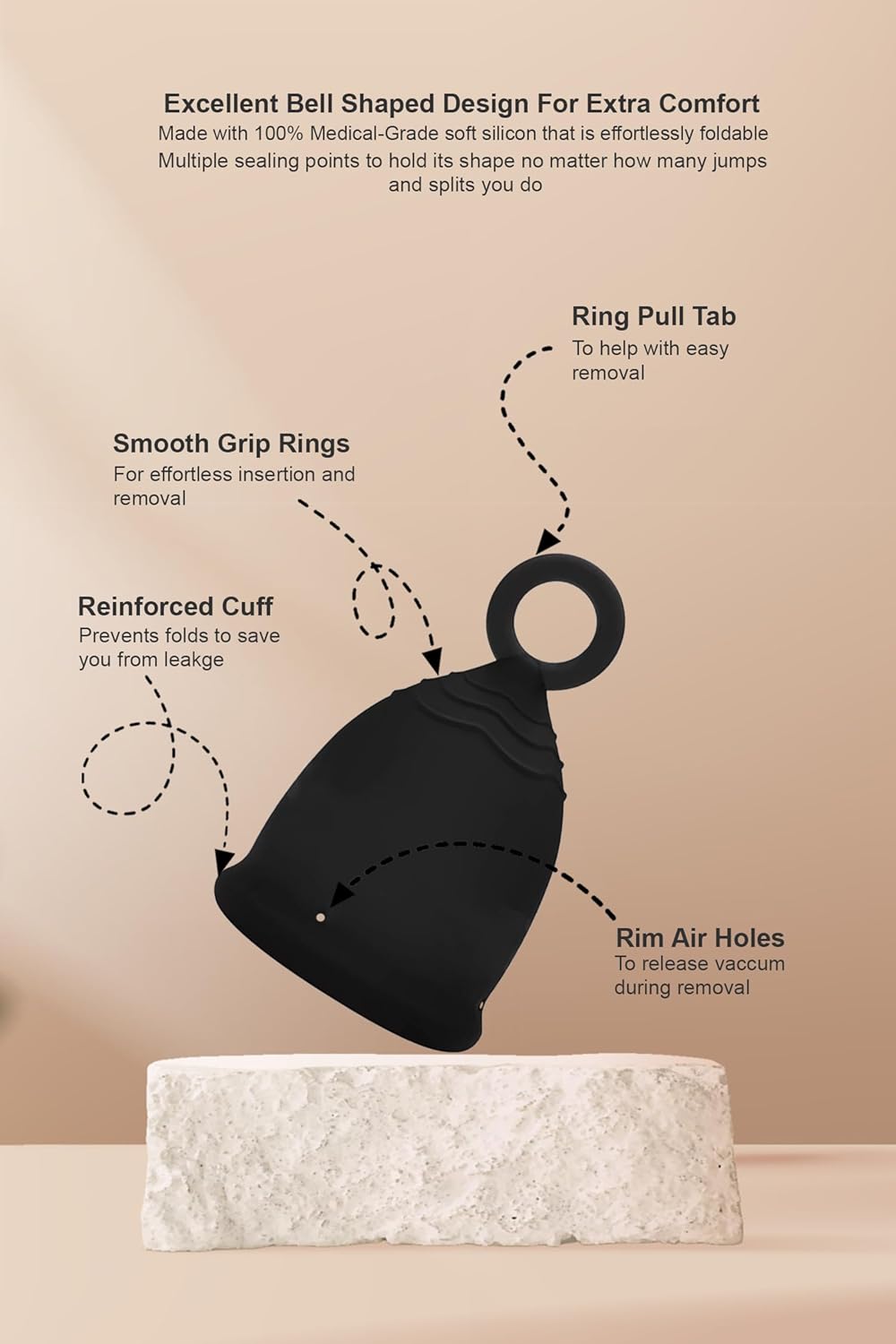 - Safe & Hypoallergenic: Our menstrual cup is 100% medical-grade silicone, free from harmful substances like BPA, latex, and dyes. It’s naturally hypoallergenic, non-toxic, and designed to maintain your vaginal pH balance without causing dryness or irritation.