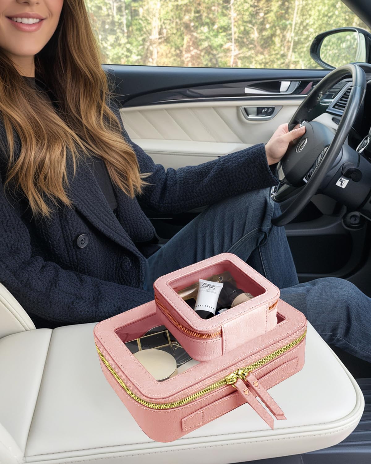 Travel Clear Makeup Bag Set, TSA Approved Cosmetic Bag Case with Zipper Portable Makeup Pouch Toiletry Bag Women Traveling Cosmetic Organizer Storage Bag Car Organizer Car Essentials for Women