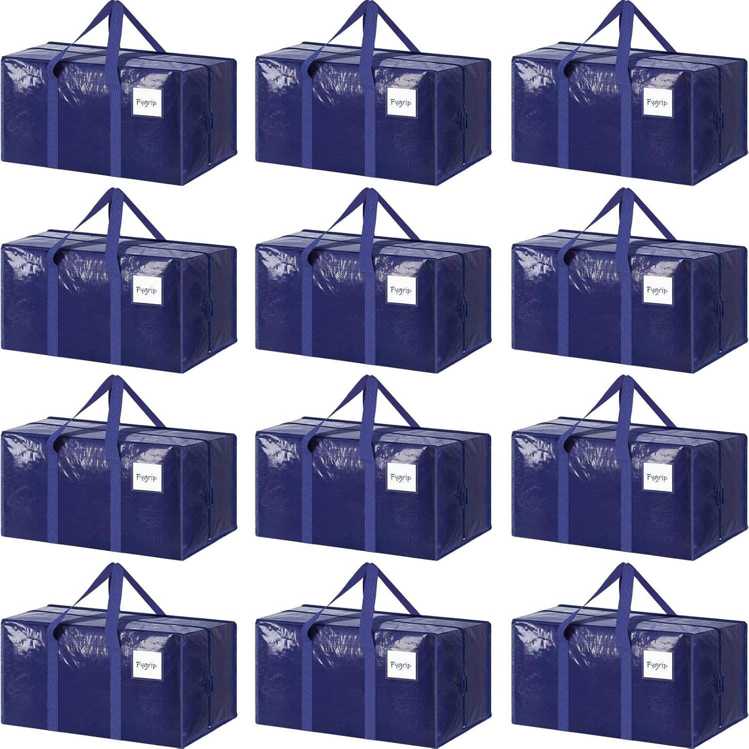 12 Pack Extra Heavy Duty Large Moving Bags with Strong Zipper & Comfortable Handles, Sturdy & Durable Clothes Storage Bags Totes Bins, Packing Moving Boxes for College Supplies, Dark Blue
