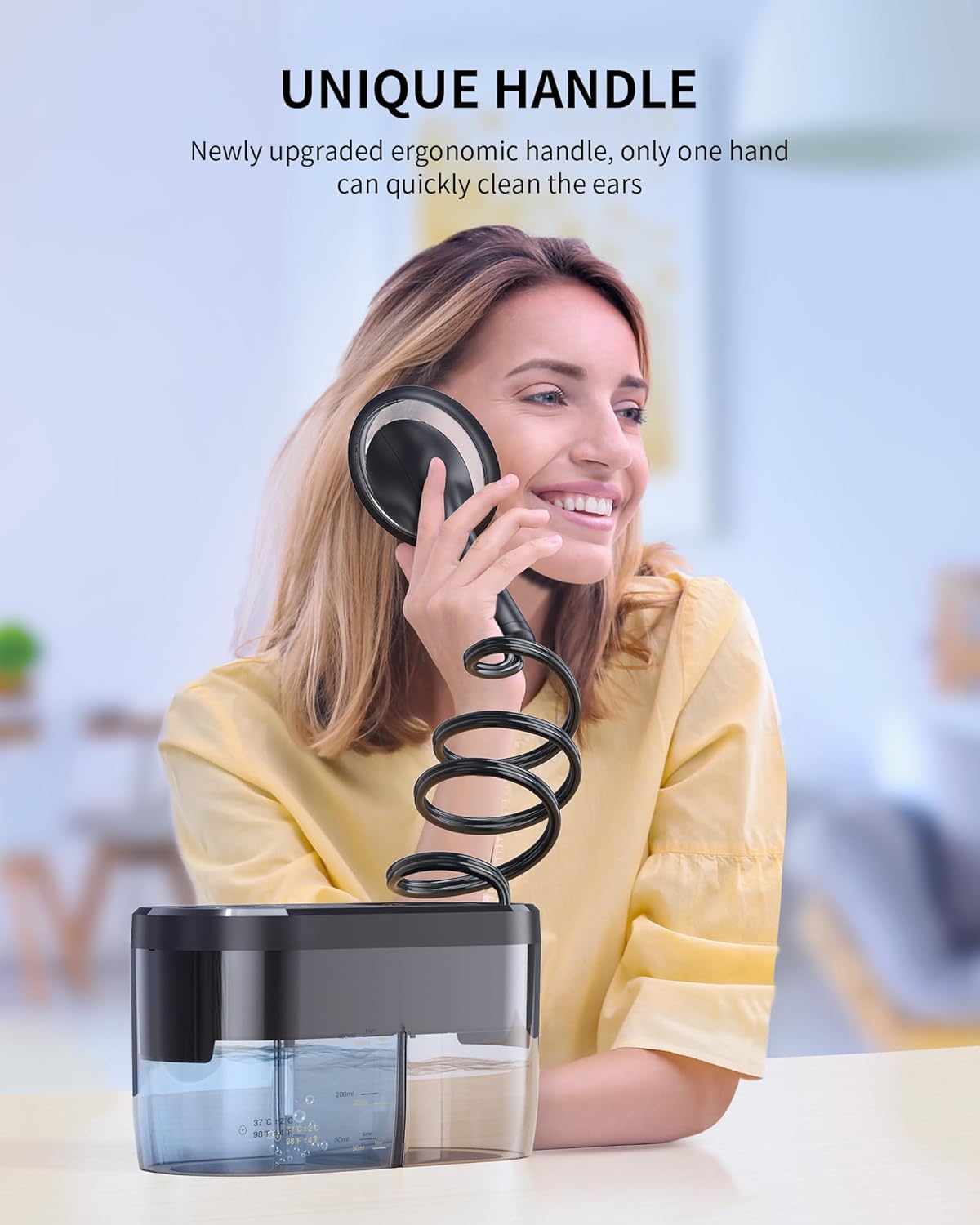Water Powered Ear Cleaner, Electric Ear Wax Removal Kit, Ear Irrigation Kit with Sewage System and 4 Clean Mode, Safe and Effective Ear Flushing Kit for Adults with 3 Ear Tips - Black