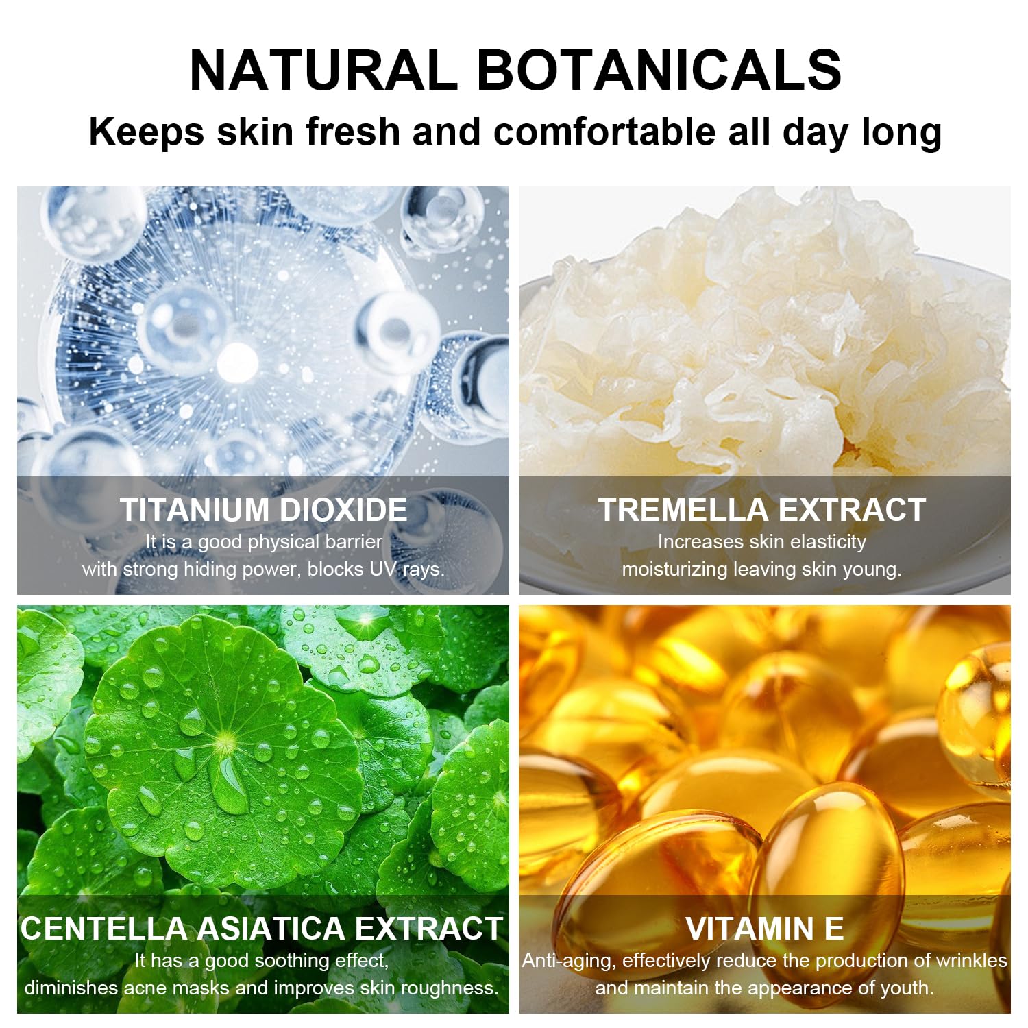 - 【Plant Skin Care Ingredients】Contains a variety of natural skin care ingredients, such as Centella asiatica extract, Tremella extract, vitamin E, etc. While applying makeup, it also balances sebum levels, reduces acne, spots, fine lines, and nourishes the skin.