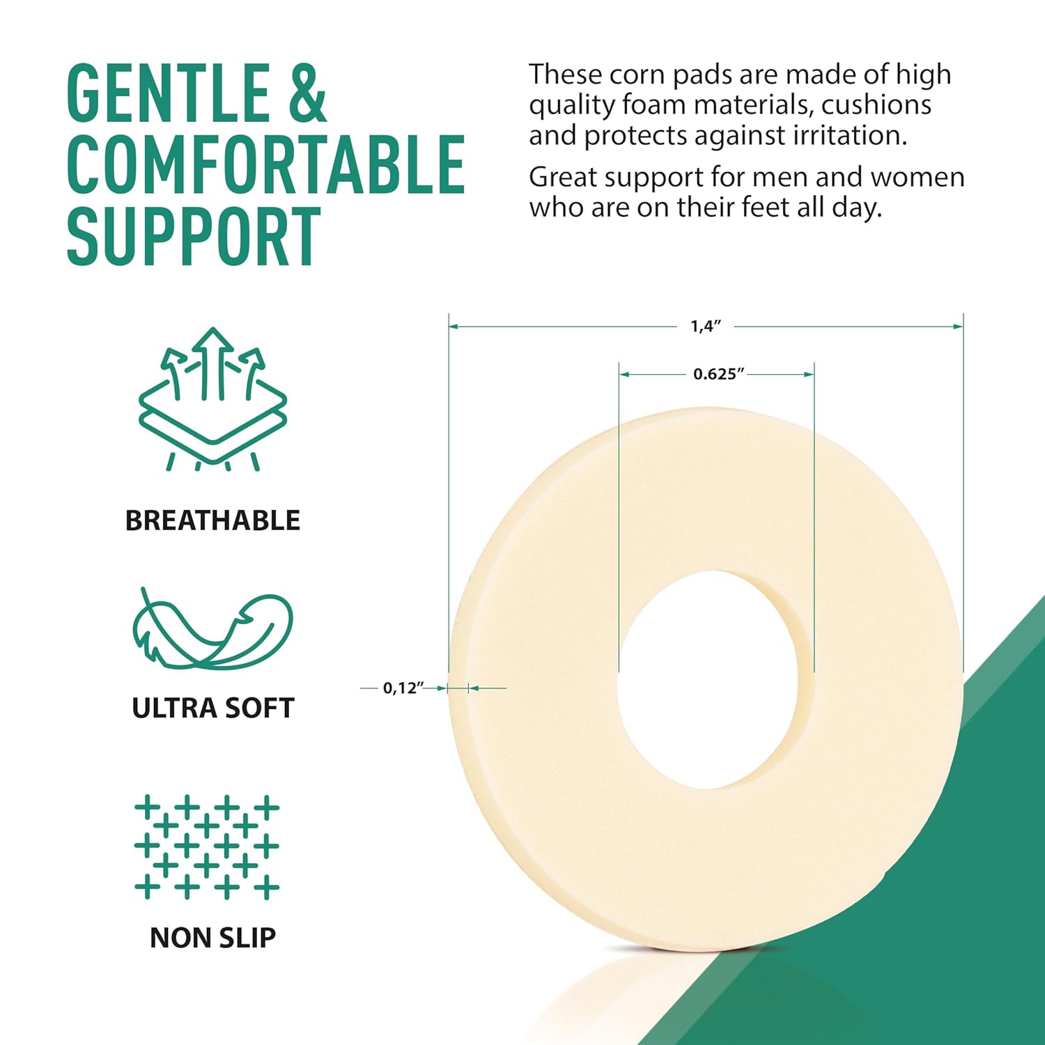 - Comprehensive Foot Care: Comfwalk cushions offer targeted relief from calluses, corns and blisters, featuring a central cutout Hole of 0.625" (1.60cm) for pain reduction and a size circle of 1.4" x 1.4" (3.55cm) for a universal fit.