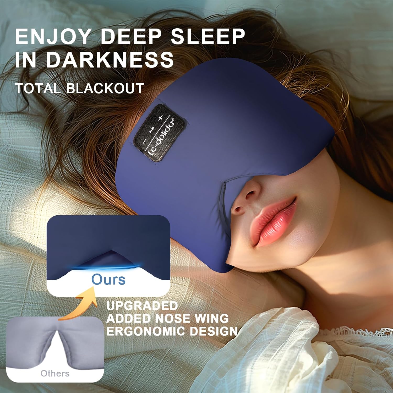 LC-dolida Sleep Mask with Bluetooth Headphones, Ice Silk Sleep Headphones with Bluetooth 5.4, Total Blackout Eye Mask for Sleeping, Sleep Soft Mask for Women Men, All Night Sleep, Travel(Navy)