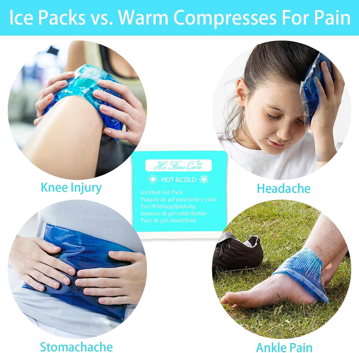 Gel Ice Packs, Cold Packs for Injury Recovery, Cold Compress for Pain Relief, Hot Cold Pack Relieves Inflammation, Arthritis for Headache, Ankle, Neck (Teal (4 Pack), 5×5 inch (13×13cm))