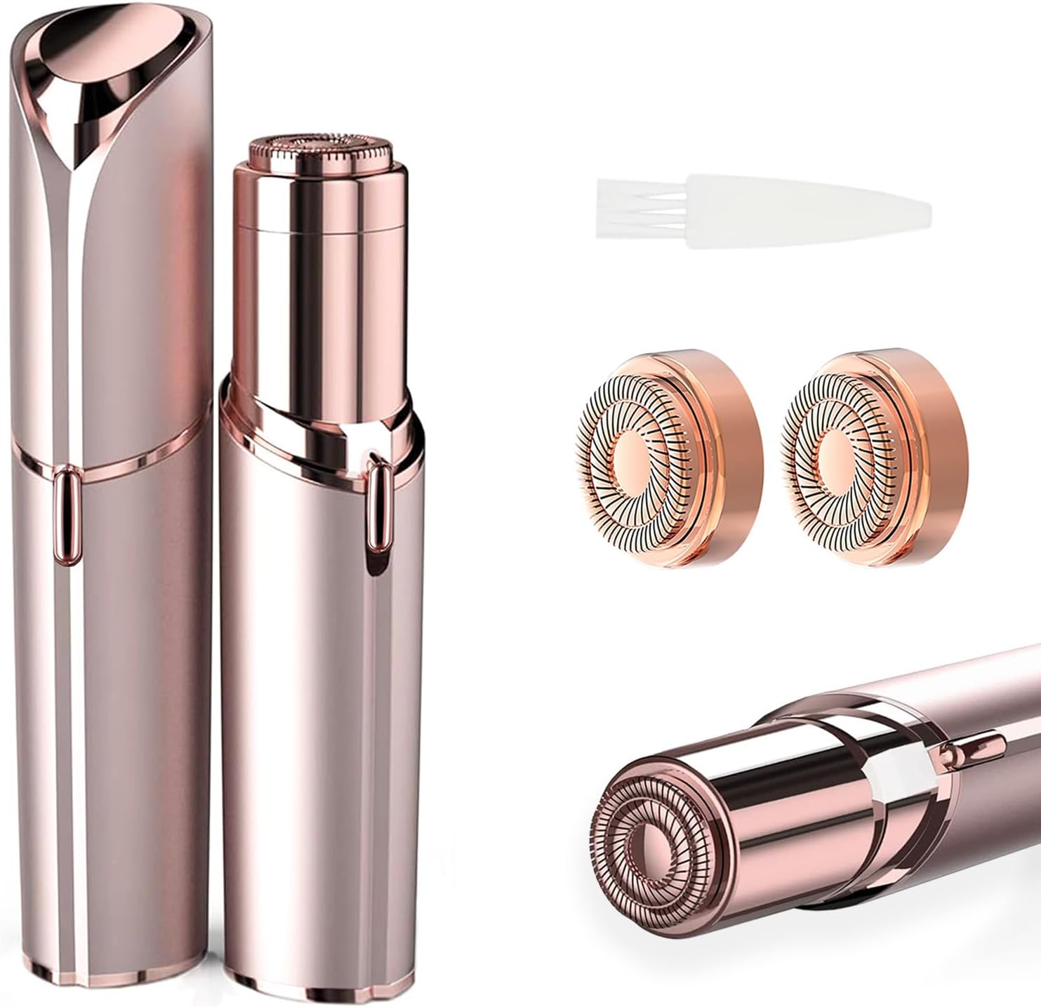 Women Facial Hair Removal Device Battery Operated with 2 Replacement Heads,Ladies Face Shaver for Peach Fuzz Upper Lip,Chin,Facial Hair Removal for Women