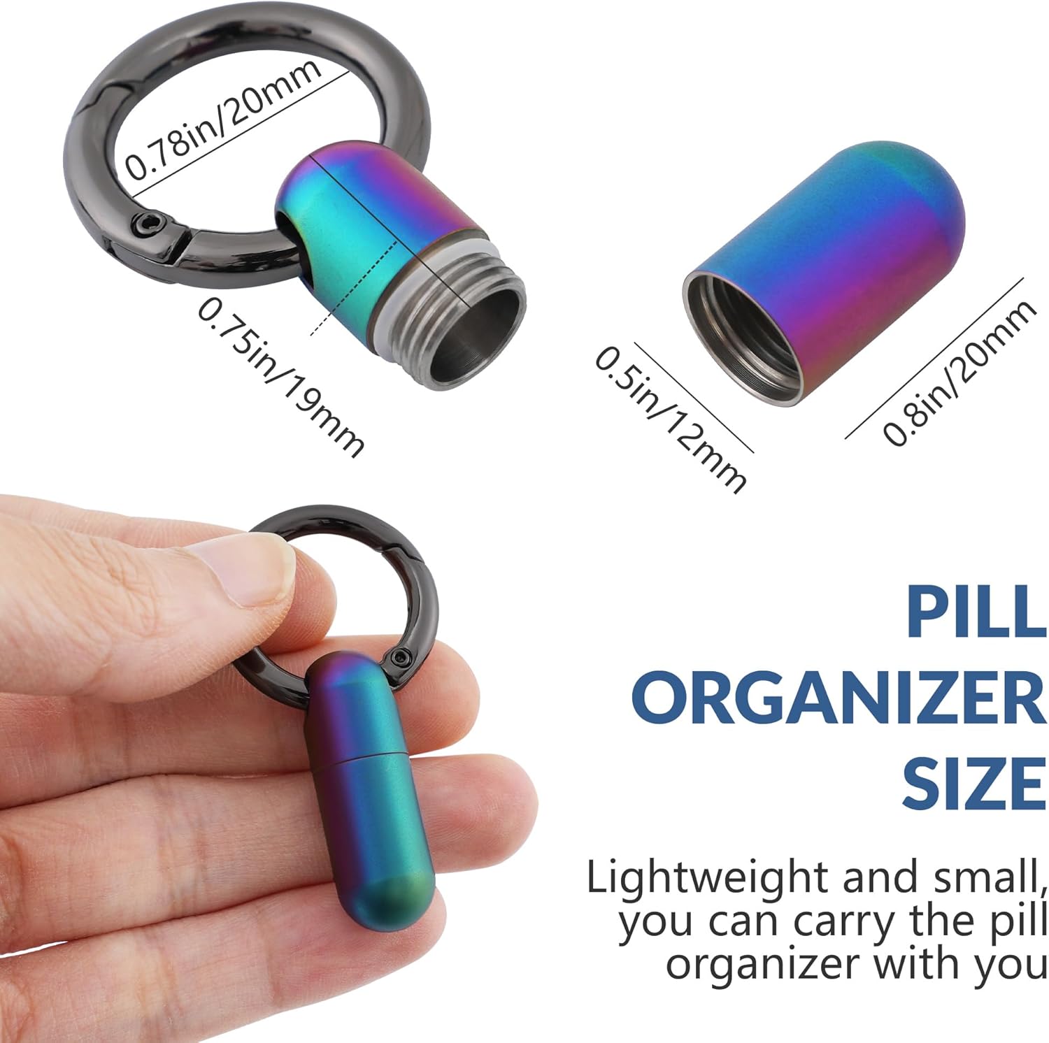 TISKY Small Keychain Pill Holder Titanium,Waterproof Tiny Pill Container with Keyring,Mini Portable Pill Case for Travel,Pill Organizer for Purse Pocket(Multicolor)