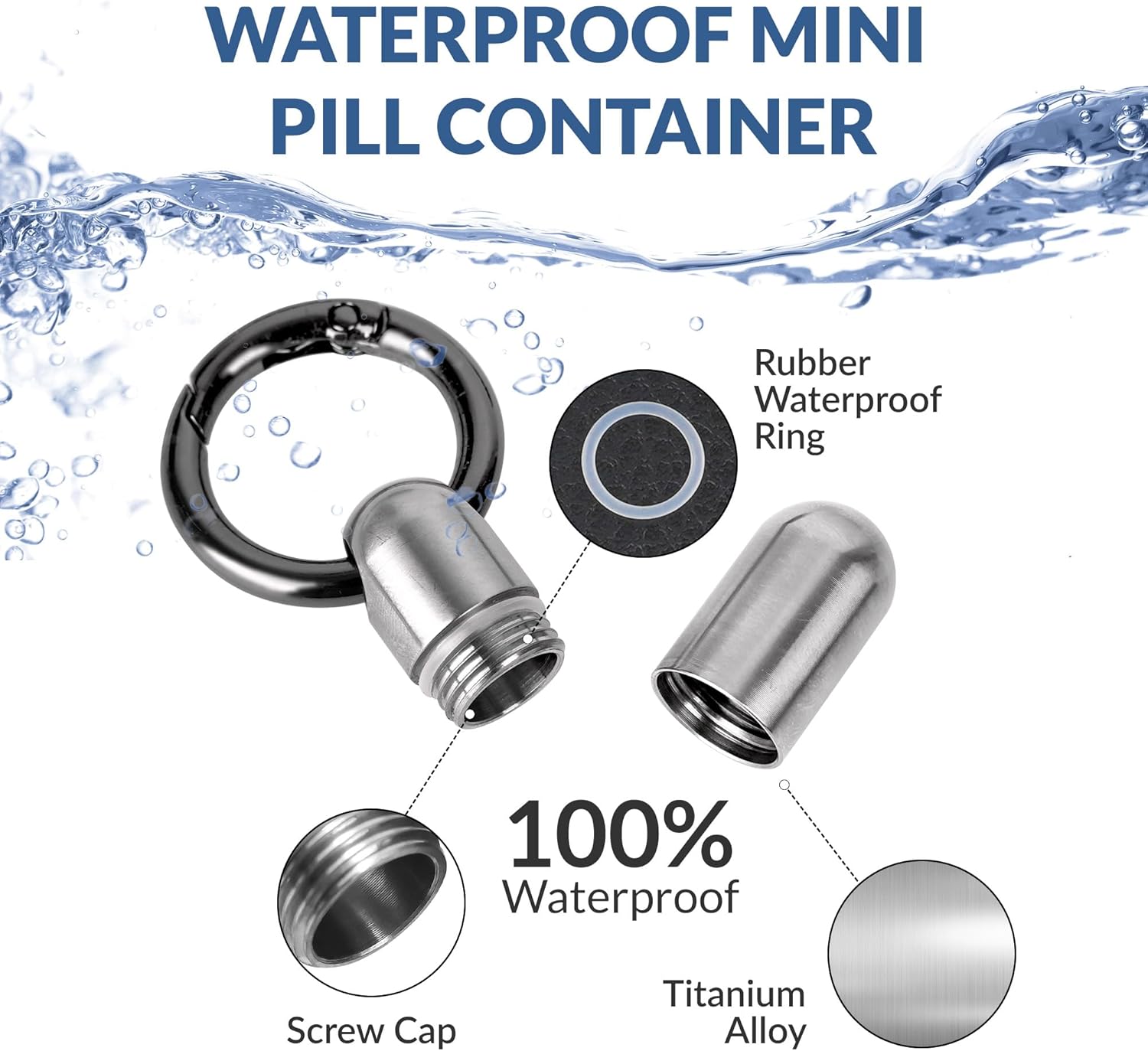 - PERFECT PILL HOLDER: Titanium alloy keychain pill case is light, durable, corrosion-resistant, non-toxic for direct pill contact, safe storage.