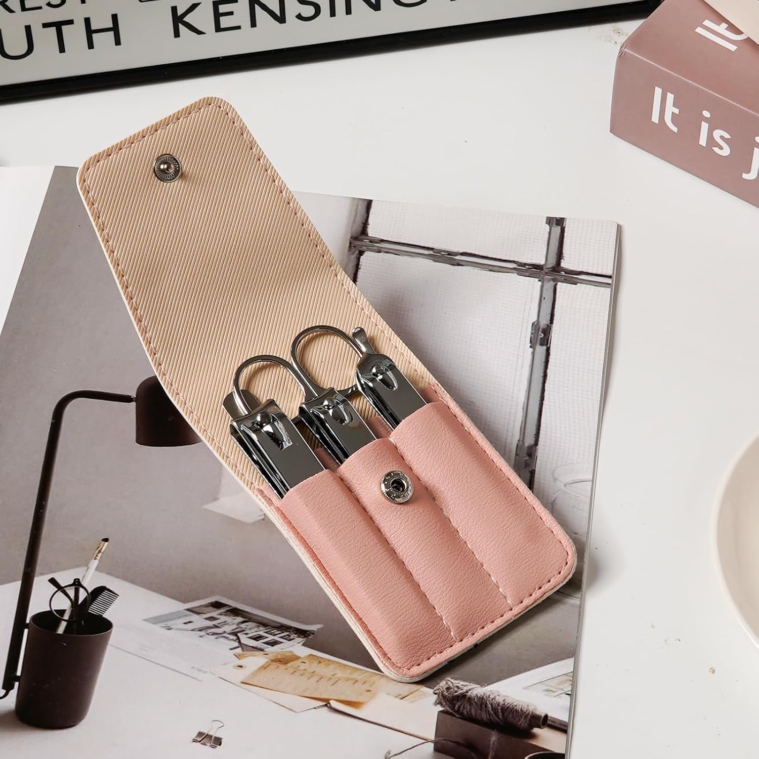 Premium Stainless Steel Nail Clippers Set - Travel Grooming Kit, 6pc Manicure/Pedicure Tools with PU Case - Unisex Gift for Men and Women(D-PinkA)