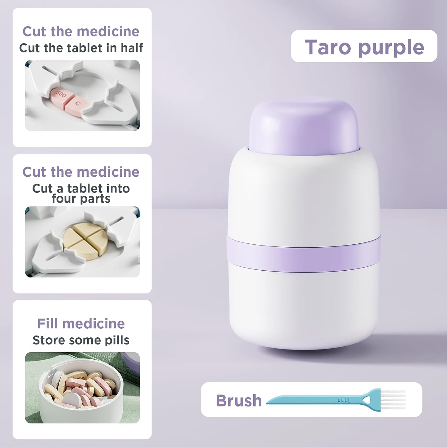 Pill Cutter - Pill Splitter with Stainless Steel Blade for Cutting Small Pills or Large Pills in one Fourth, Pill Cutter 1/4, Suitable for Cuting Vitamins, Tablets (1-4 Purple)