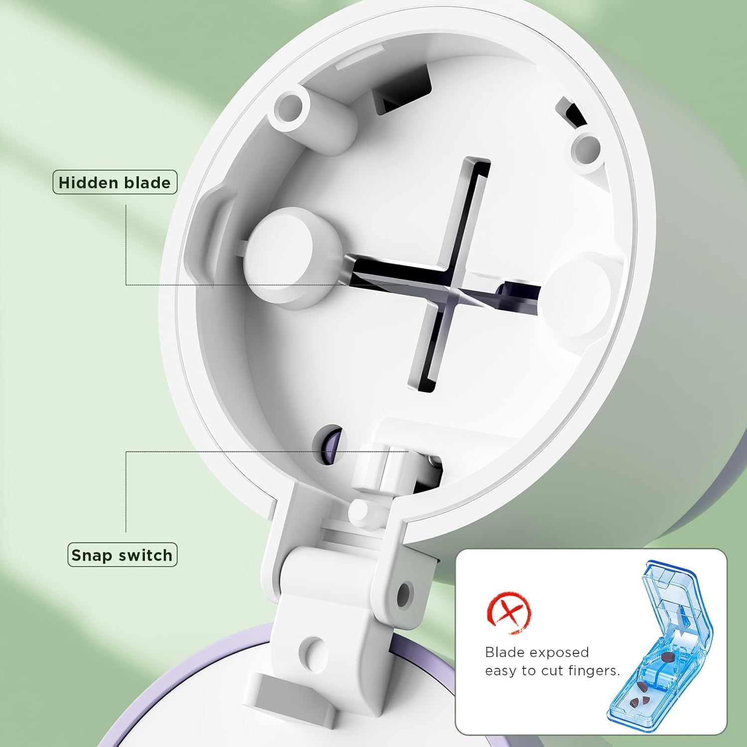 - This pill cutter is made of ABS and stainless steel material, which means this small device is secure and durable. Moreover, It adopts the top hidden blade design, safety switch lock system, easy and safe for you to use.