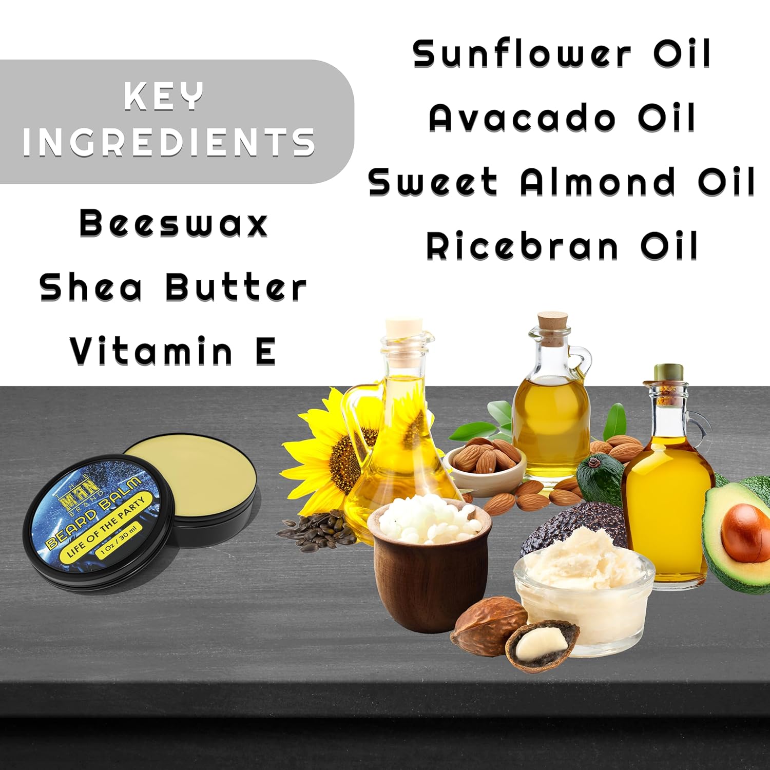Life of the Party Beard Grooming Balm for Men - Natural Beeswax Based Conditioning Formula for Styling and Care (1 Ounce, Life of the Party)