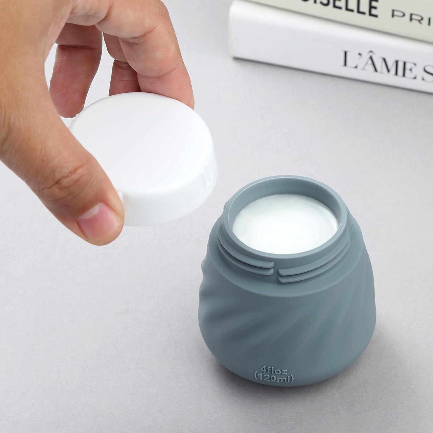 Gemice 4 OZ Travel Size Containers for Toiletries, 4-Pack Leak-Proof Silicone Slime Jars with Lids, BPA Free Small Round Cosmetic Slime Container for Lotion, Cream, Ointments, Travel Essentials