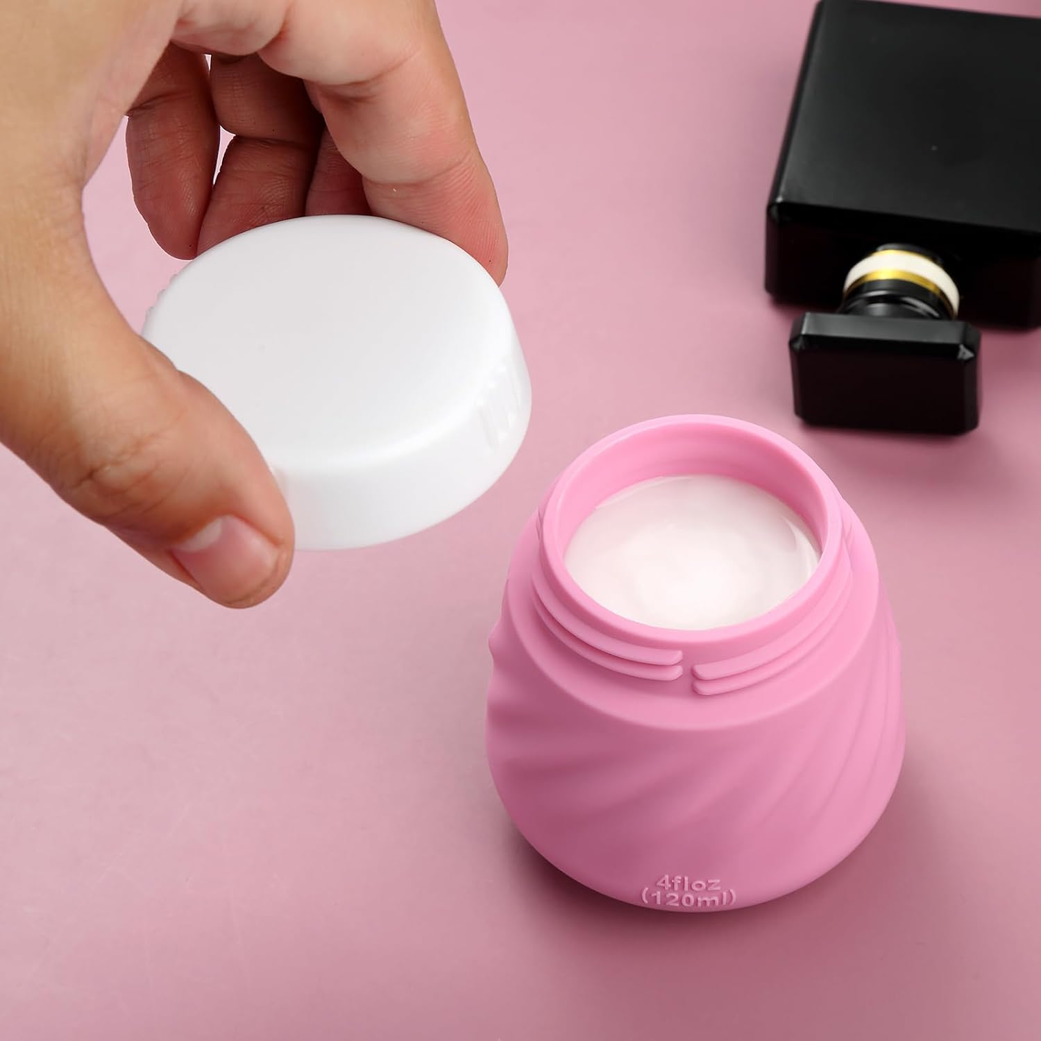 Gemice 4 OZ Travel Size Containers for Toiletries, 4-Pack Leak-Proof Silicone Slime Jars with Lids, BPA Free Small Round Cosmetic Slime Container for Lotion, Cream, Ointments, Travel Essentials