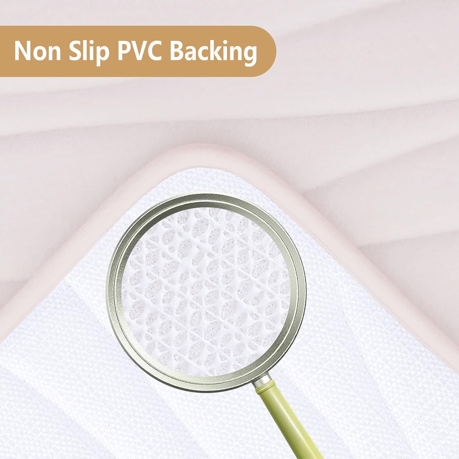 - Non-Slip Backing: Our memory foam bath rug features a robust and firm PVC backing that stops shifting and skidding and ensures long-lasting durability. WARNING: Place mat on CLEAN DRY SMOOTH FLOOR only. Water under bath mats can cause it to slip. Keep bottom of mat dry. Before using bath carpet, test with foot to ensure it doesn't move
