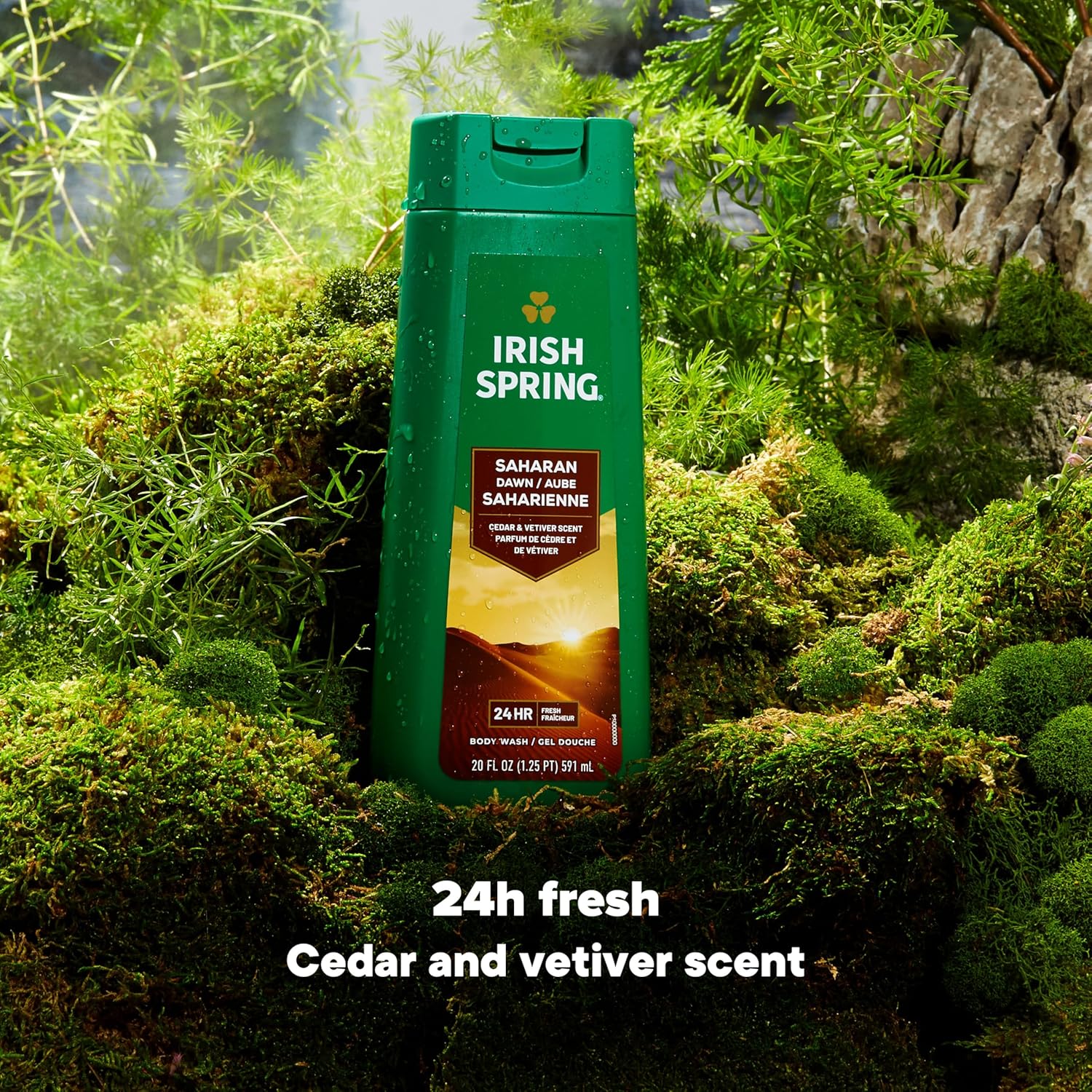 Irish Spring Saharan Dawn Moisturizing Body Wash for Men, 24 Hour Fresh, Face and Body Wash, Paraben Free, Cedar and Vetiver Scent, 20 fl oz Bottle (Pack of 4)