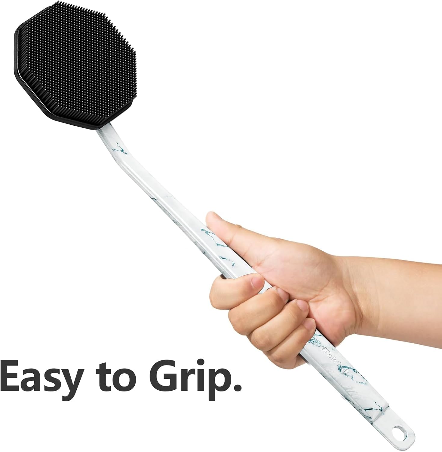 iTokGoK® Platinum Green Emerald Silicone Back Scrubber with Long Handle Back Brush for Shower,Silver-Infused Back Scrubber for Men and Women
